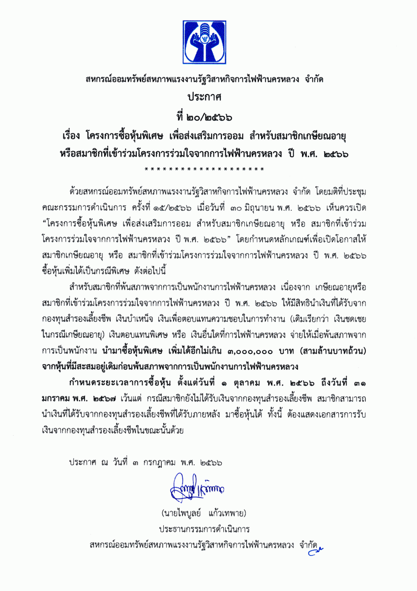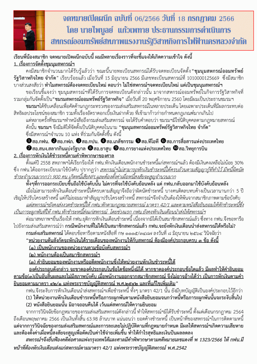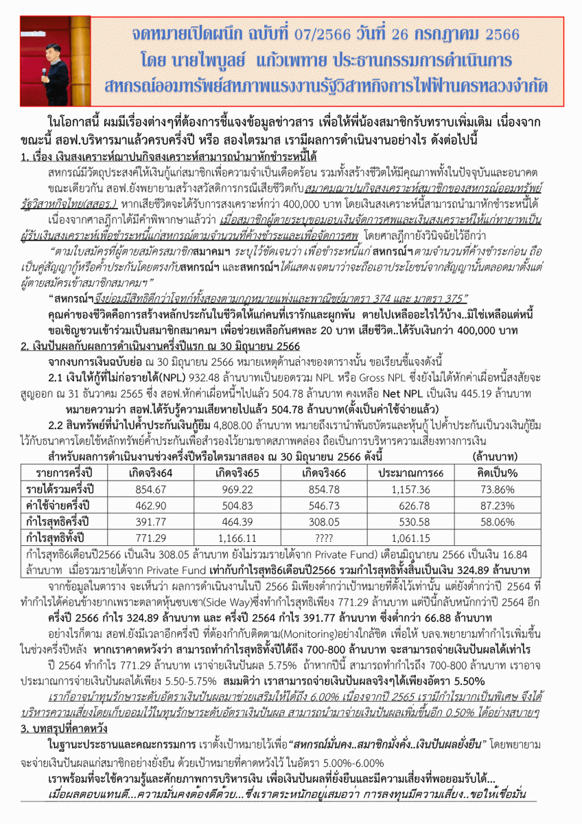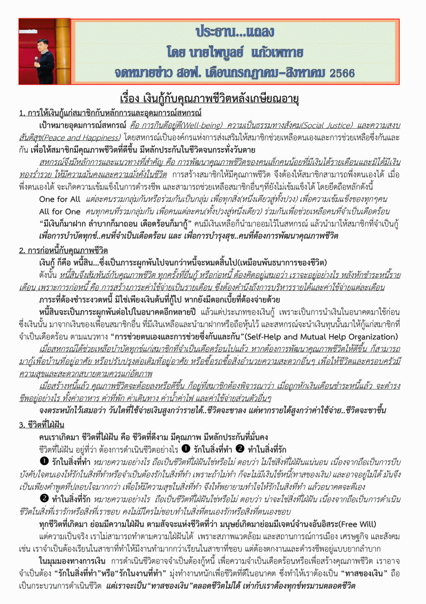 ประกาศที่ 24/2566 เรื่อง เปิดช่องทางให้บริการธุรกรรมผ่านระบบ Mobile Application แก่สมาชิกสหกรณ์ ("สอฟ." Applacation)