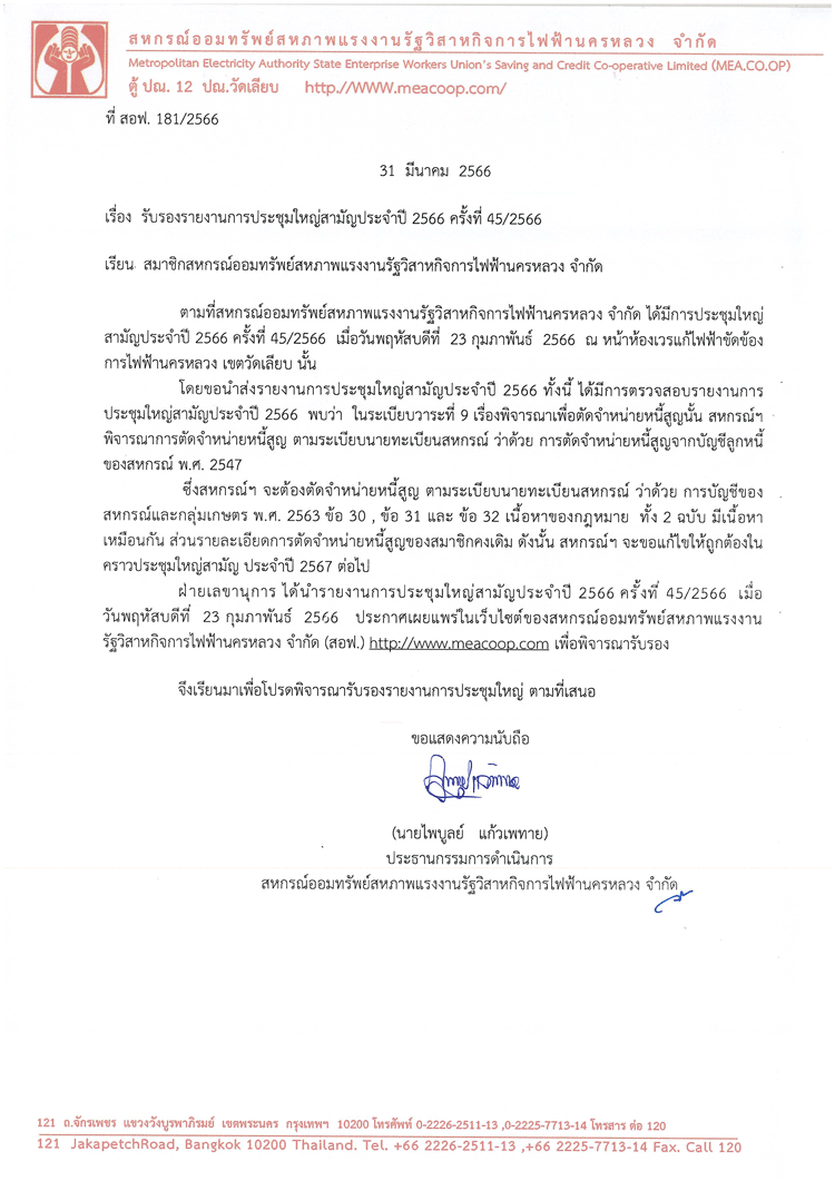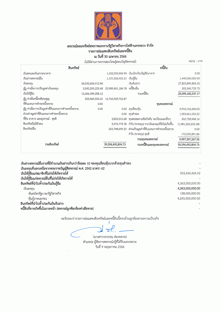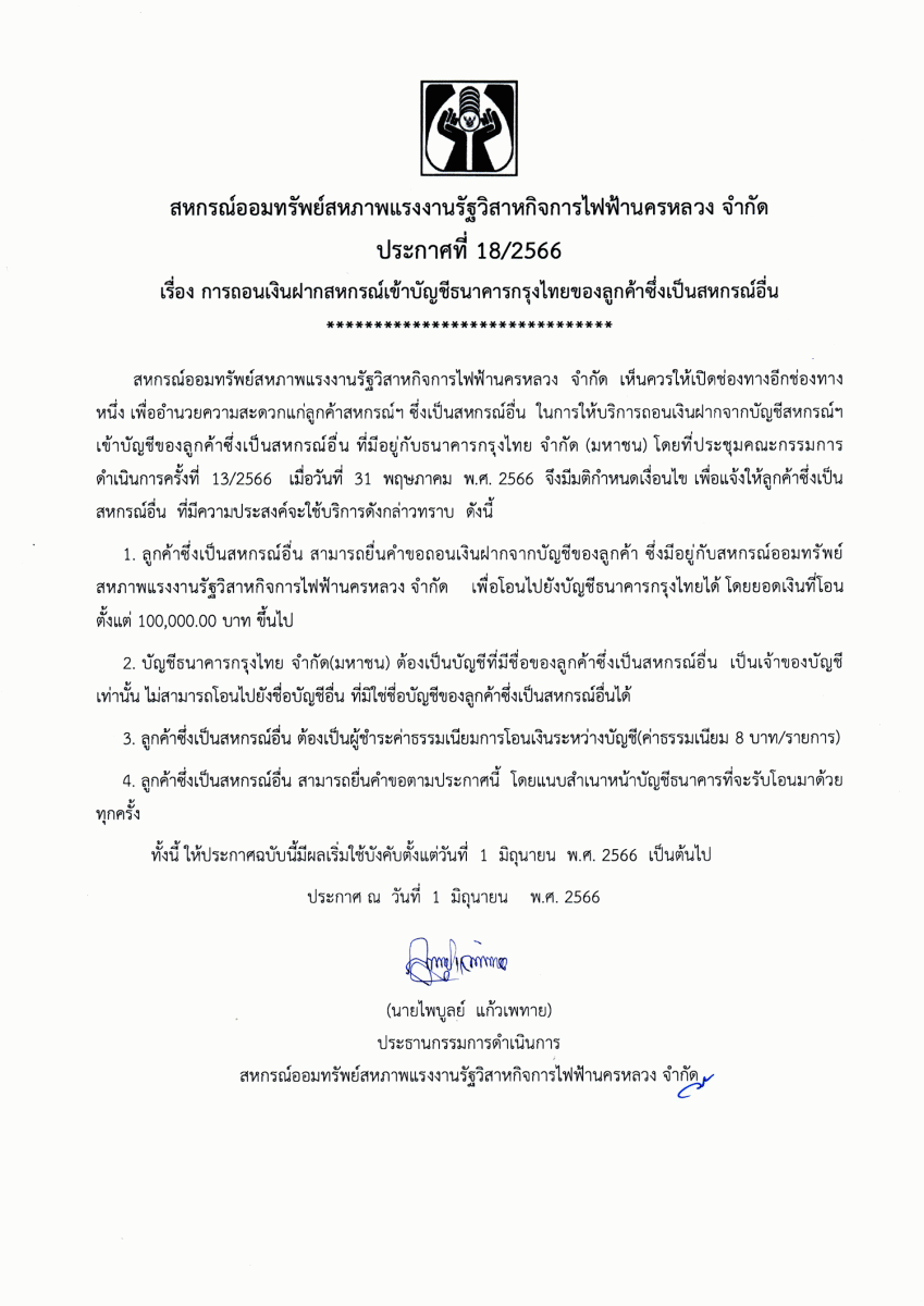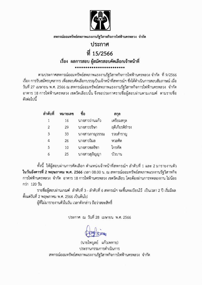 ประกาศที่ 11/2566 โครงการเงินกู้สินเชื่อส่วนบุคคล