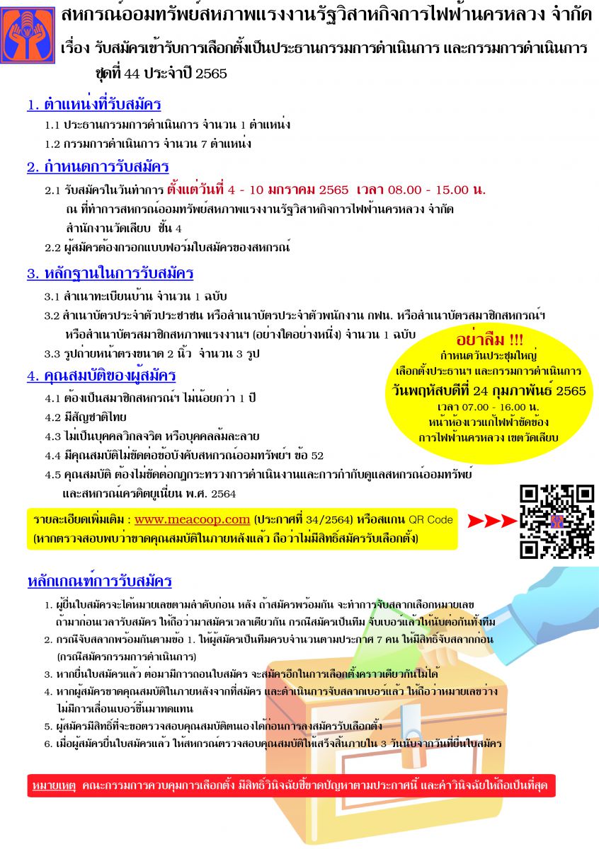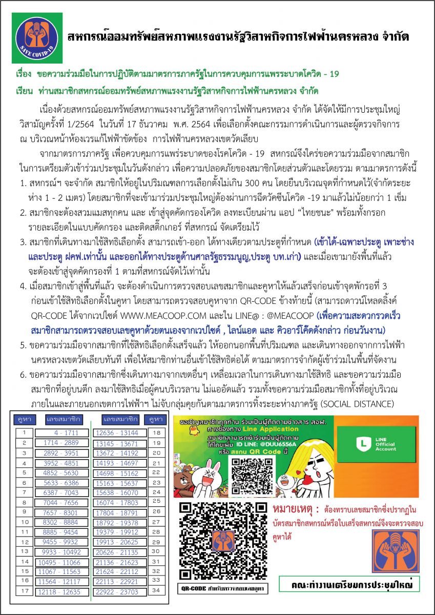 สมาชิกสามารถตรวจสอบคูหเลือกตั้ง โดยสแกน QR Code หรือแตะที่ลิ้งด้านล่าง  กรุณาเติม 0 หน้าหมายเลขสมาชิกให้ครบ 6 หลัก   https://script.google.com/macros/s/AKfycbyMo_Z6GMv0AWlMJ57rquaA...