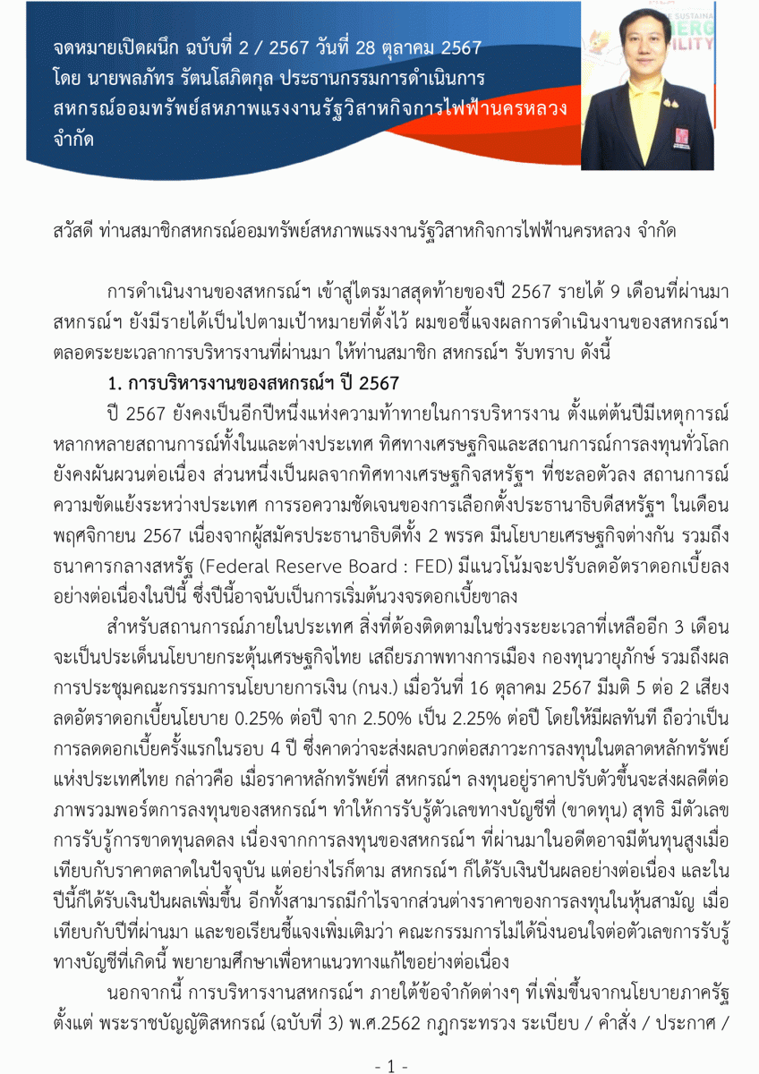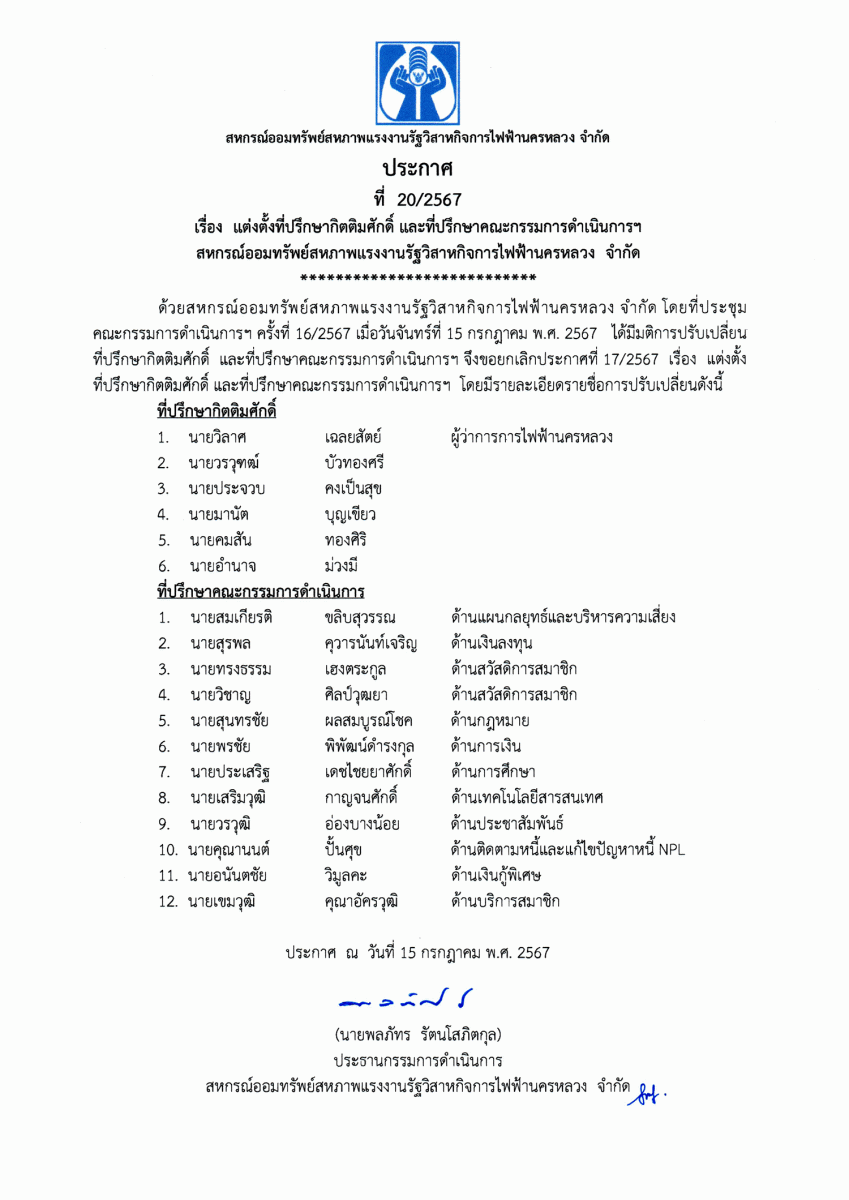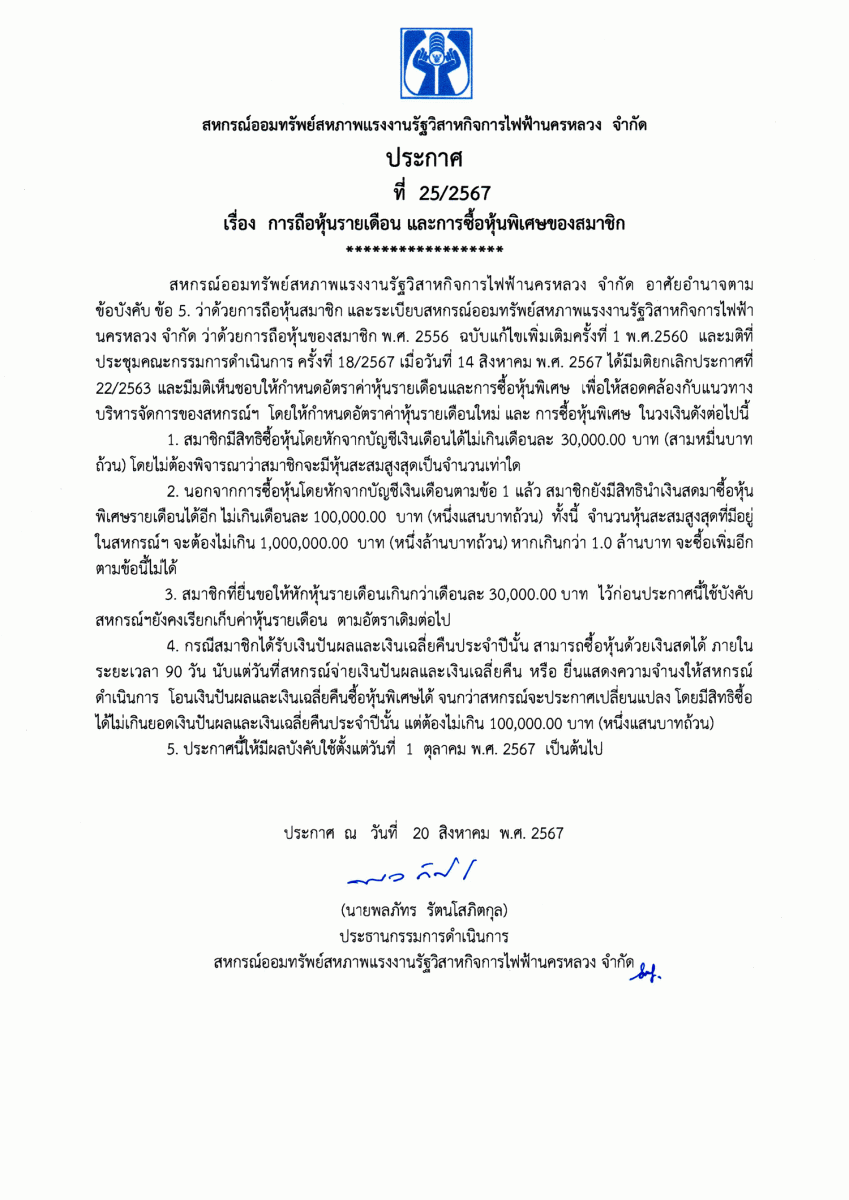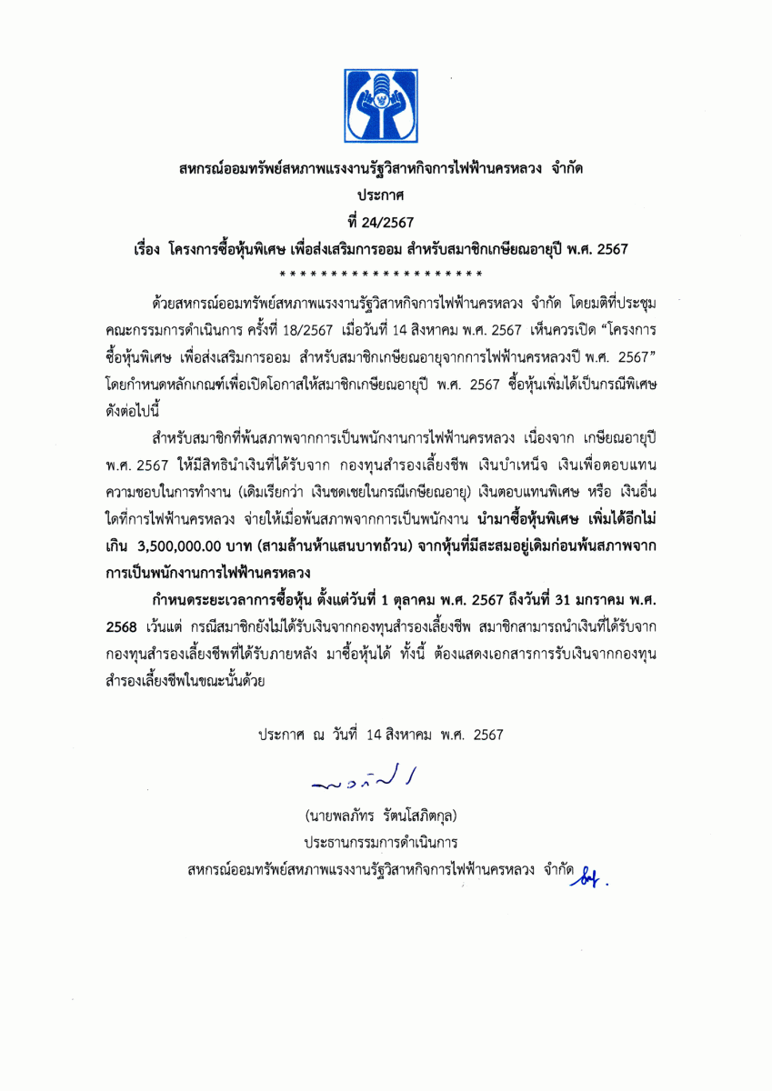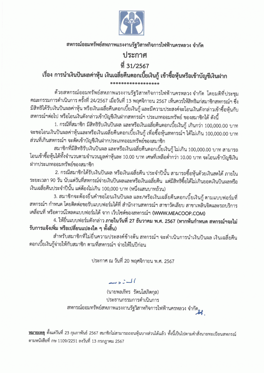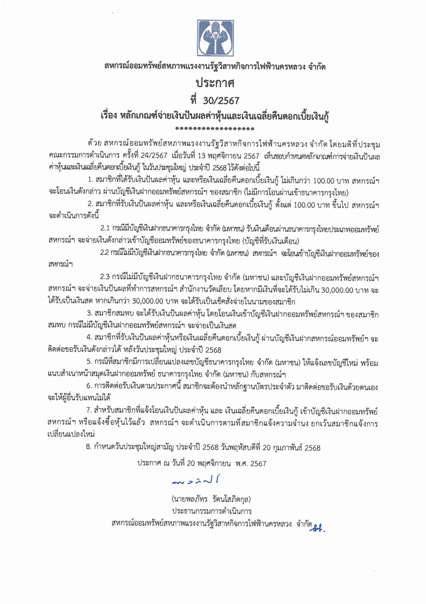 ประกาศที่ 28/2567 เรื่อง โครงการเงินกู้ส่งความสุขปีใหม่