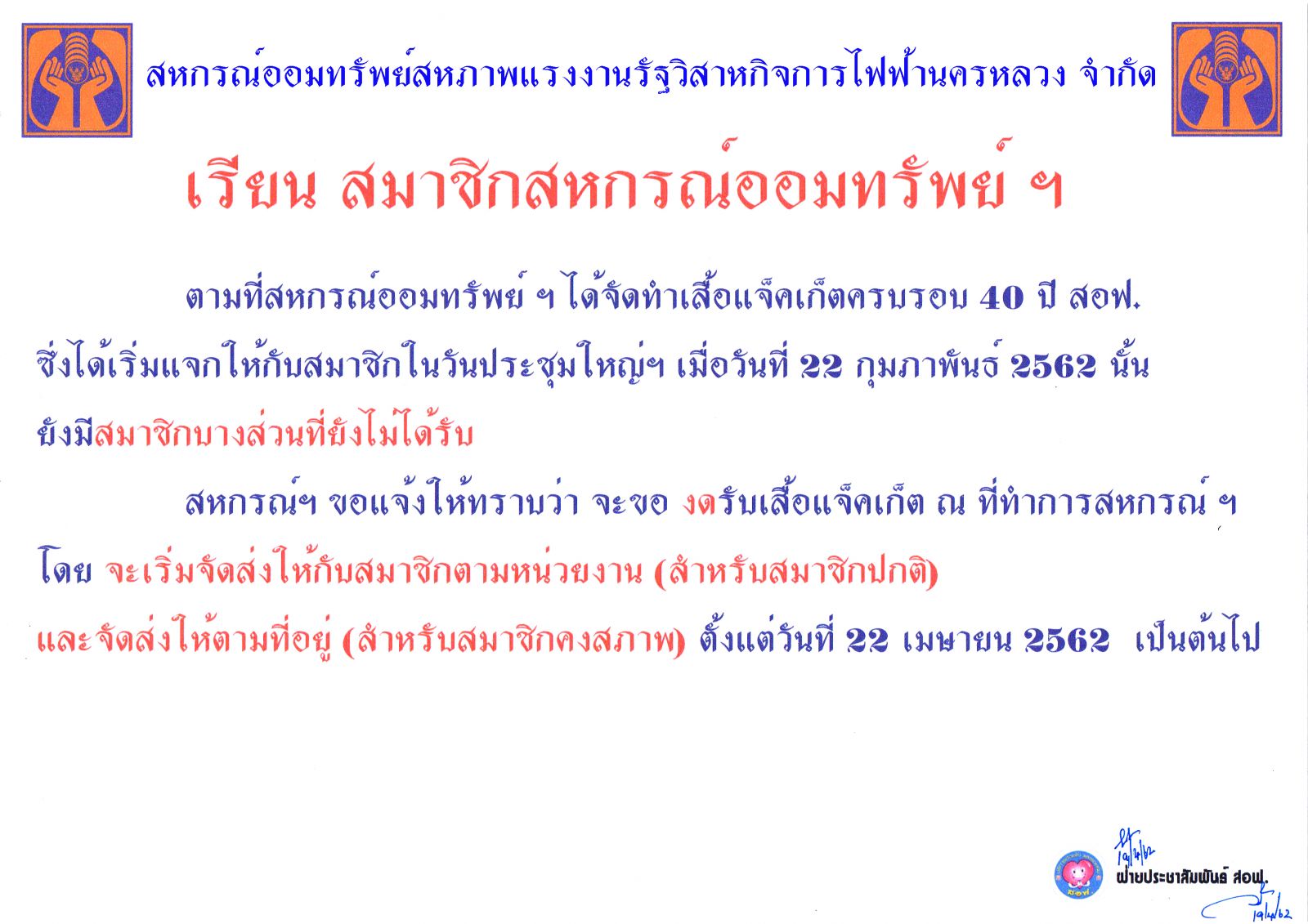 • การรับเสื้อแจ็คเก็ต สอฟ. ครบรอบ 40 ปี
