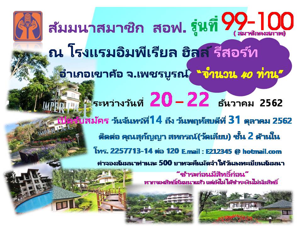• ขอเชิญสมาชิกร่วมสัมมนา รุ่นที่ 99 และ 100 (สำหรับสมาชิกคงสภาพ)