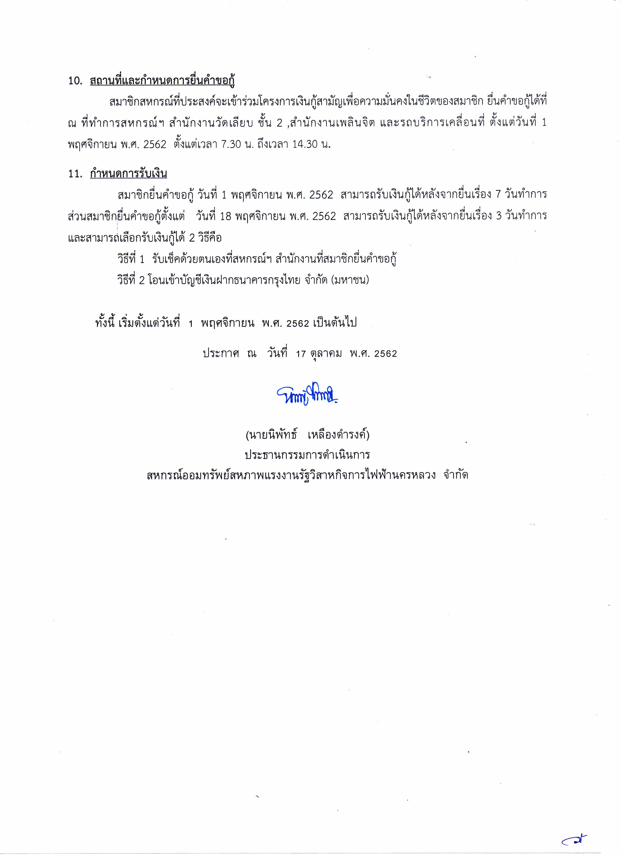 • ประกาศที่ 40/2562 โครงการเงินกู้สามัญเพื่อความมั่นคงในชีวิต