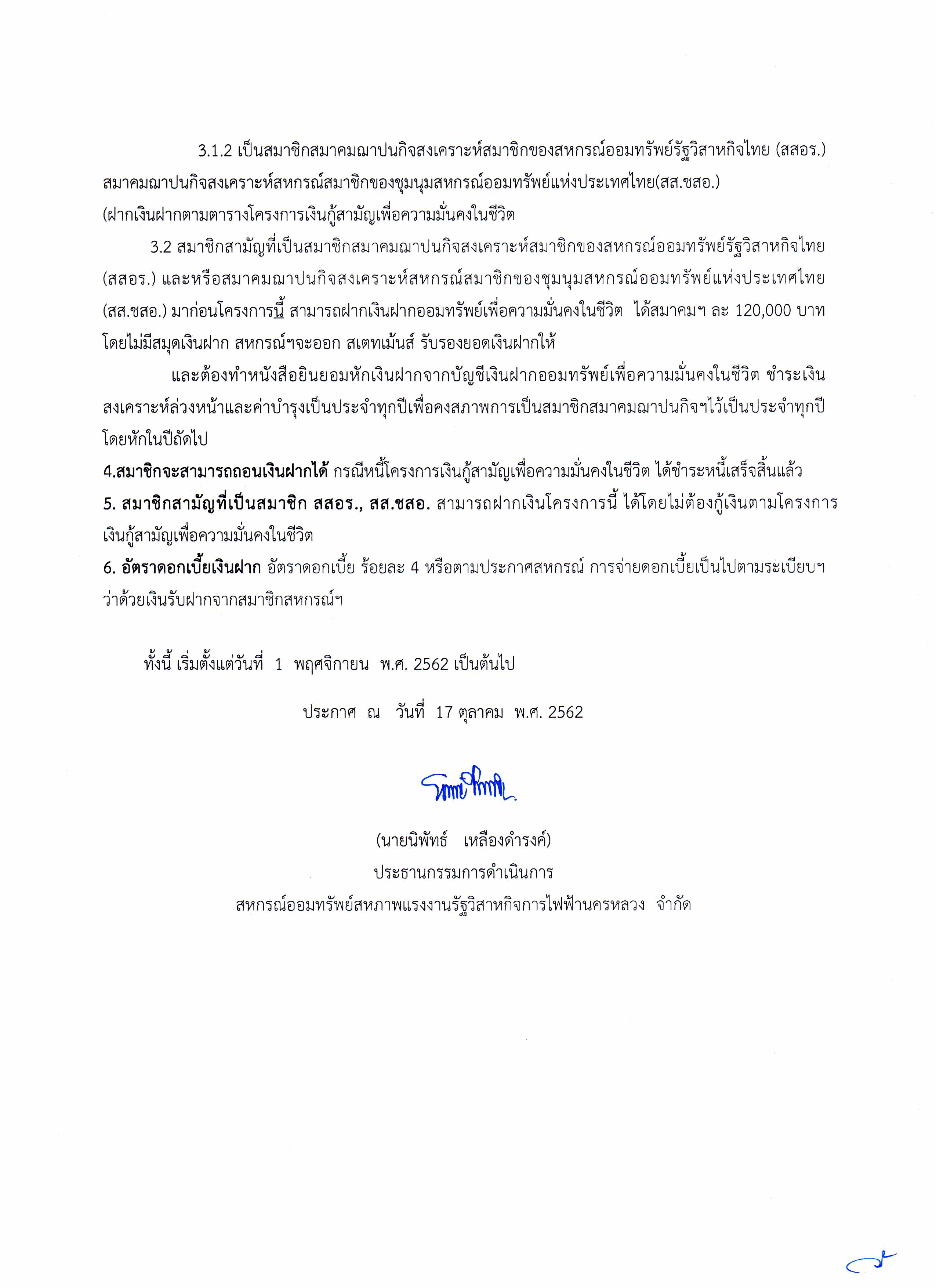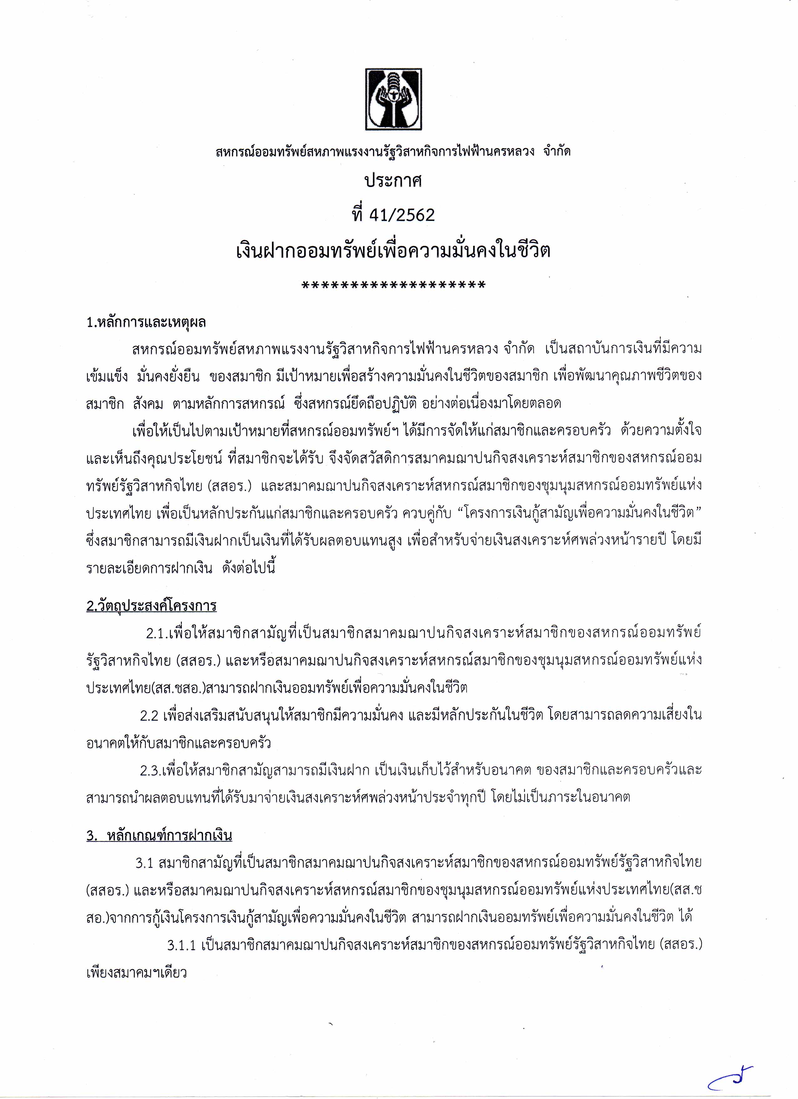 • ประกาศที่ 41/2562 เรื่อง เงินฝากออมทรัพย์เพื่อความมั่นคงในชีวิต