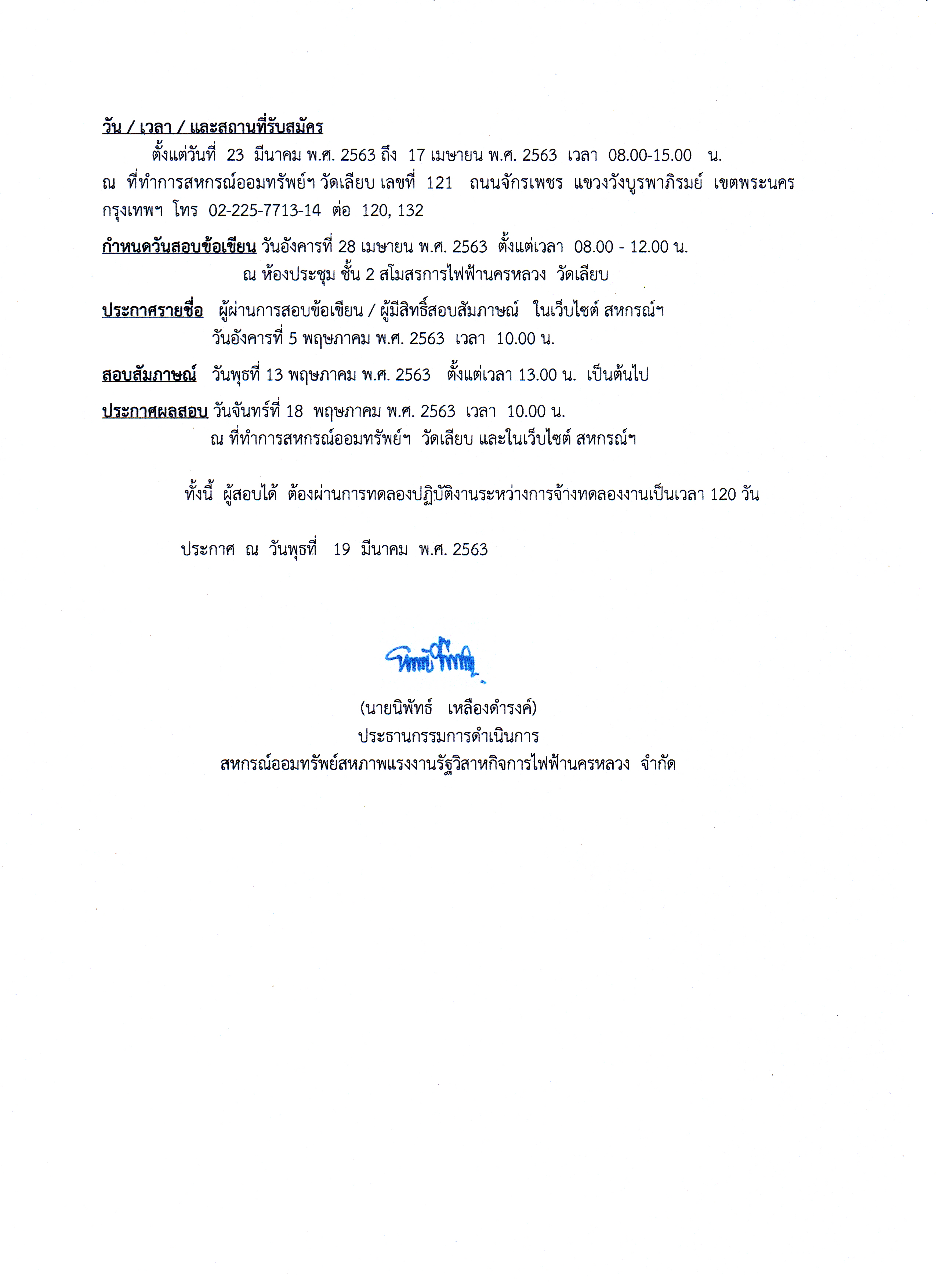 • ประกาศที่ 15/2563 เรื่อง รับสมัครเจ้าหน้าที่เพื่อสอบคัดเลือกในตำแหน่ง เจ้าหน้าที่ฝ่ายคอมพิวเตอร์