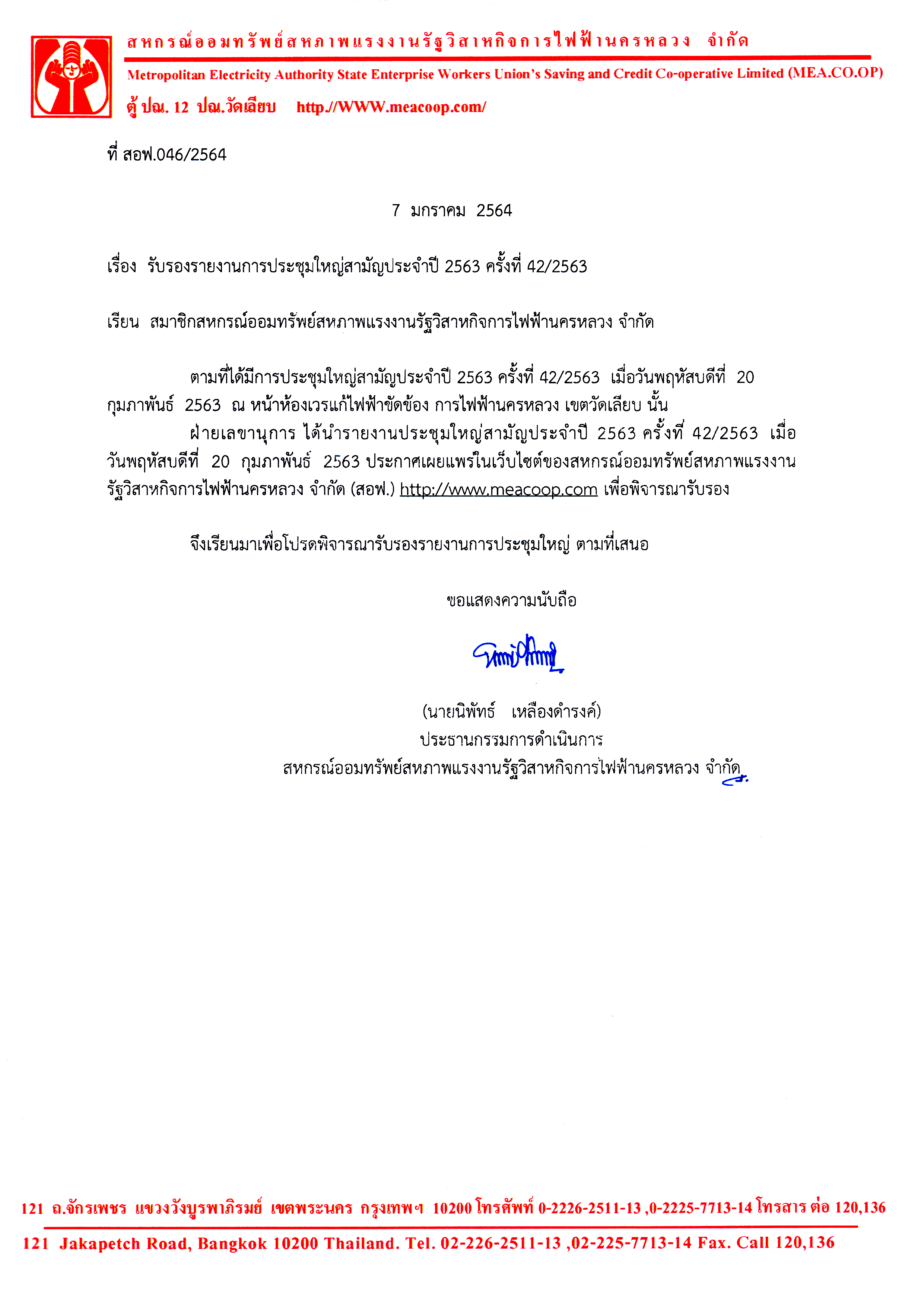• การรับรองรายงานการประชุมใหญ่สามัญประจำปี 2563