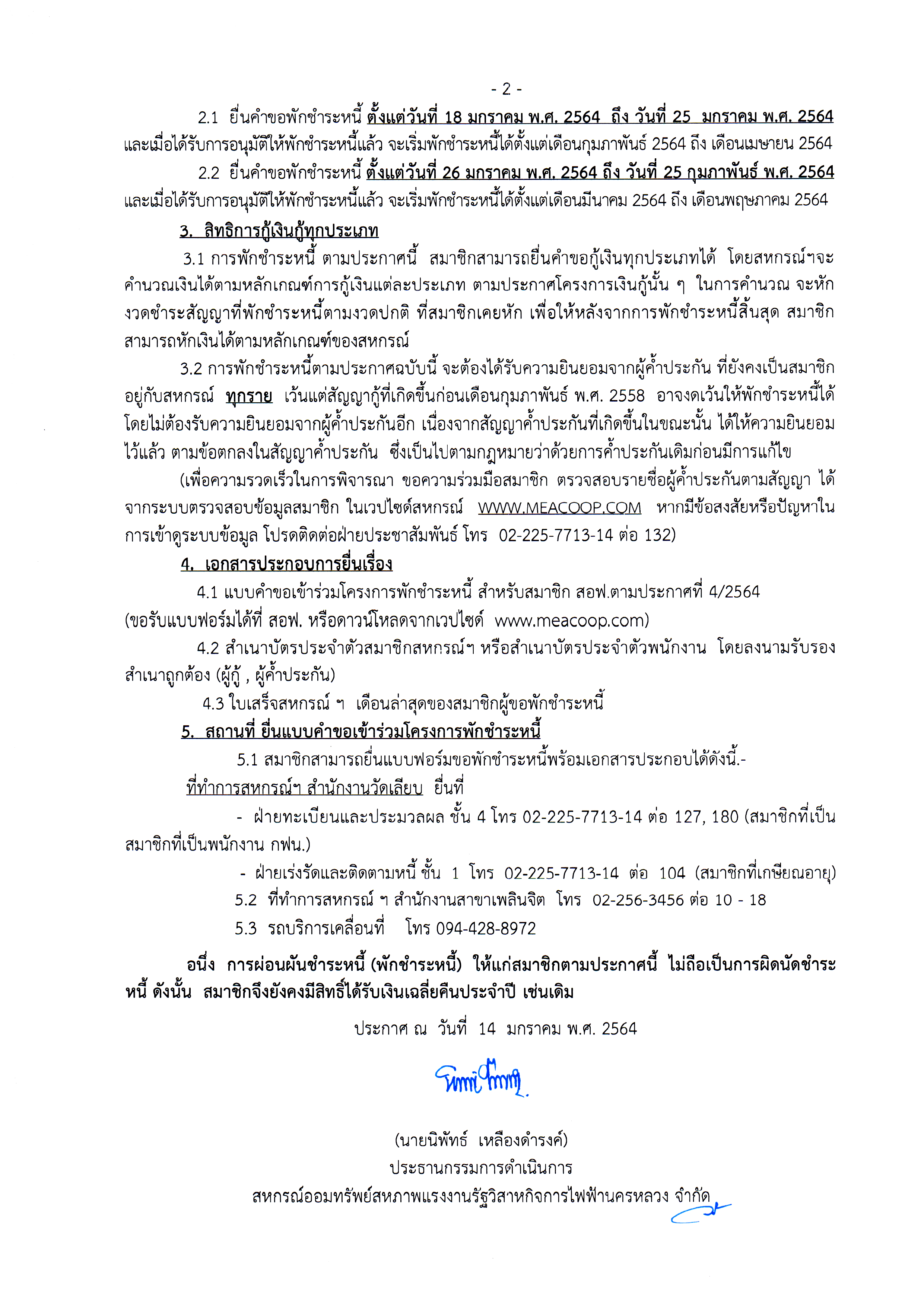 สมาชิกสามารถ ชำระเงินไม่พอหักประจำเดือน ได้ที่ สอฟ.สาขาวัดเลียบและ สาขาเพลินจิต หรือผ่าน Mobile App ธ.กรุงไทย (Krungthai Next) จ่ายบิล (รหัส 7190) ทั้งนี้ สมาชิกที่ชำระผ่าน สอฟ. App และ MEACOOP ธ.กรุงศรี ระบบแอปลิเคชั่น ยังไม่รองรับการให้บริการนี้