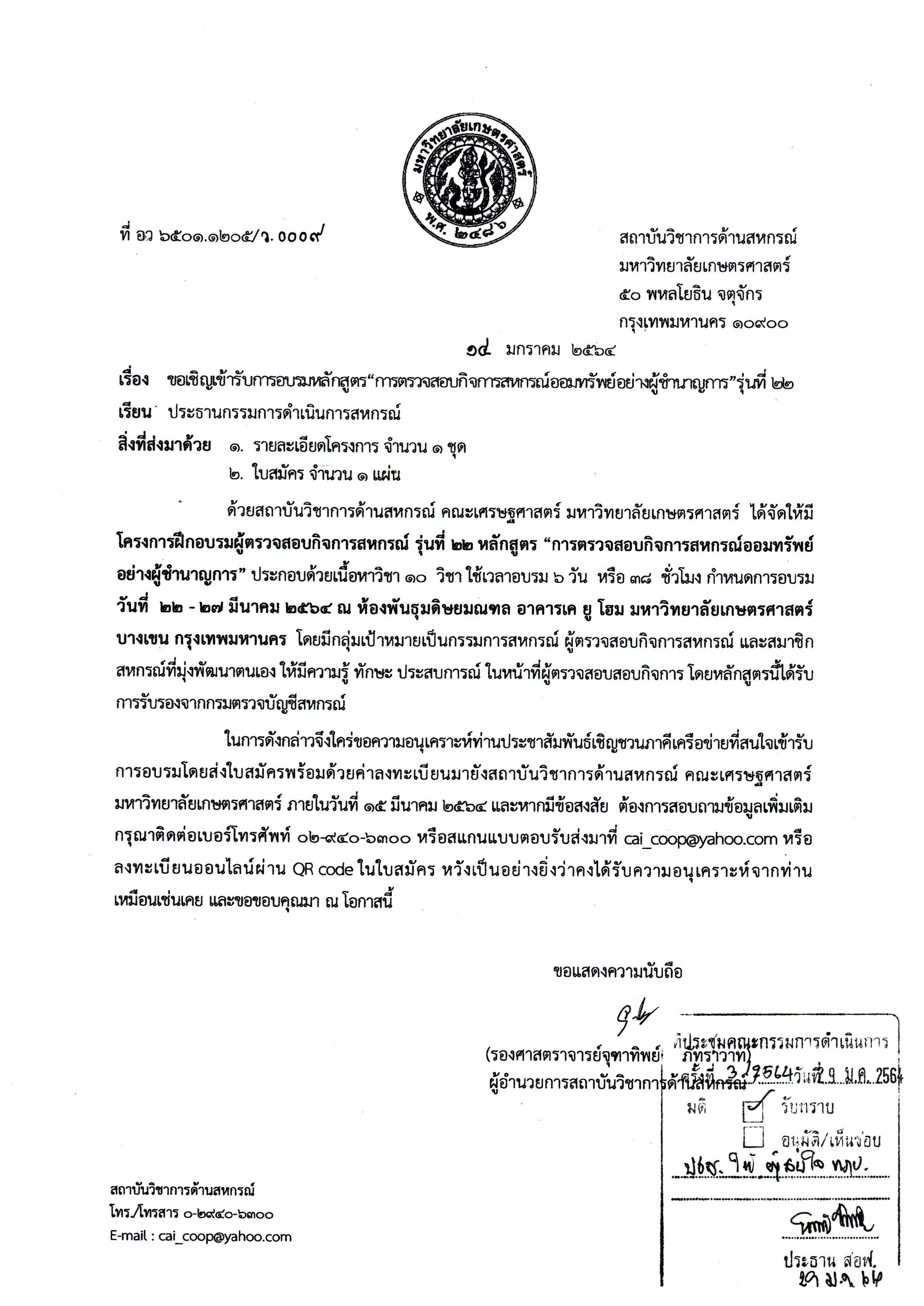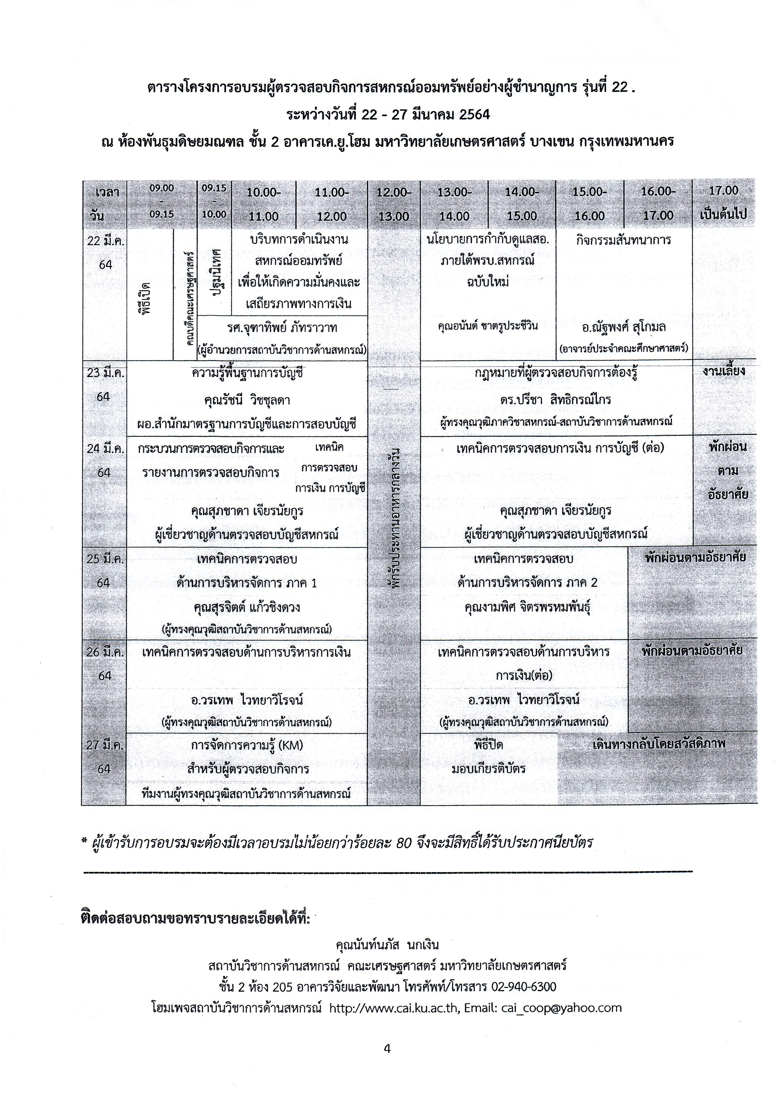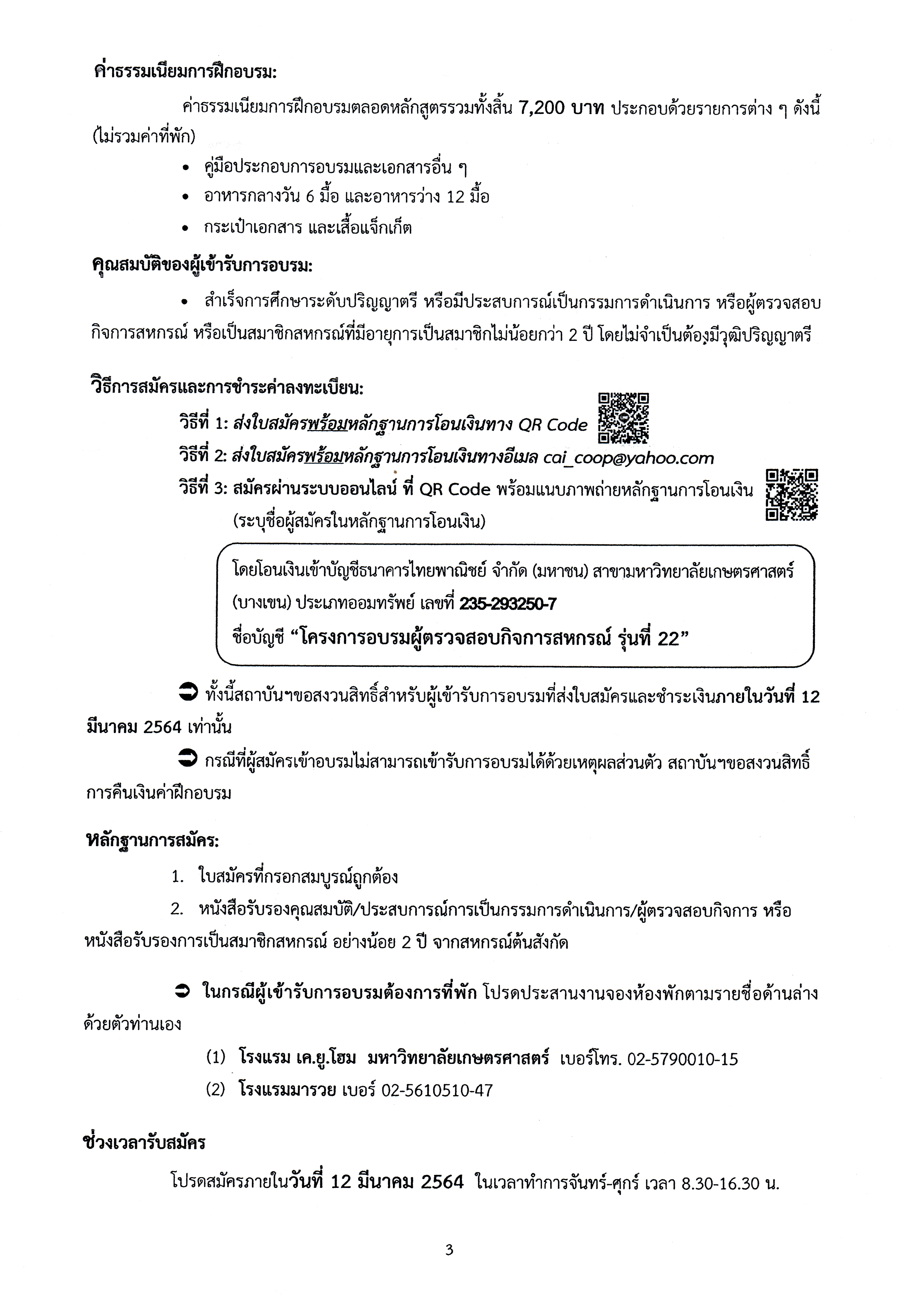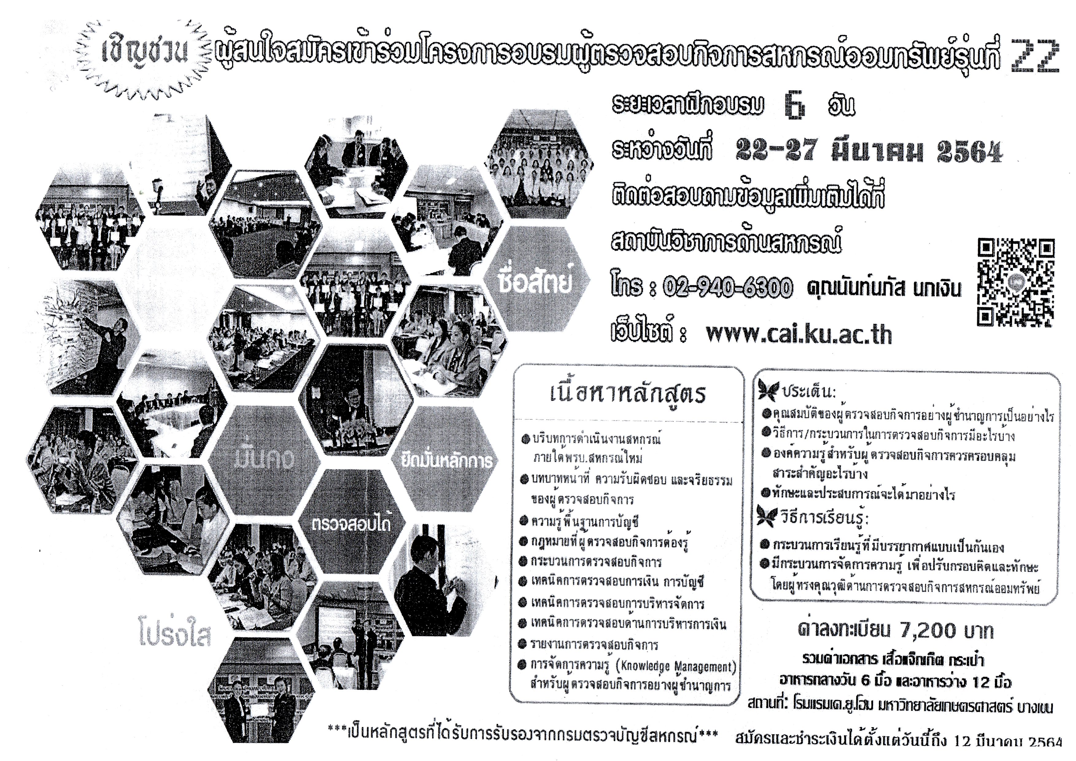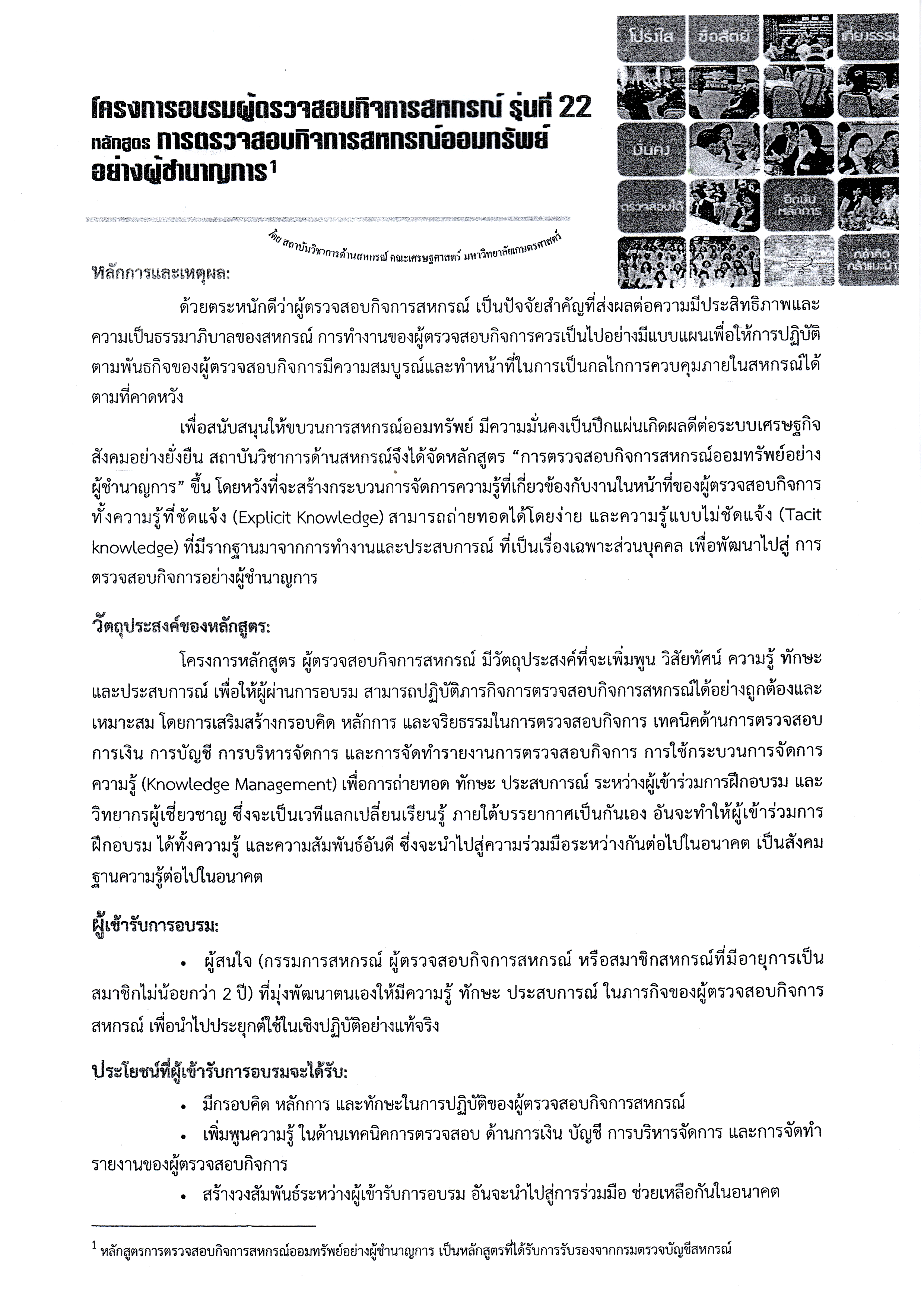 • ขอเชิญเข้ารับการอบรมหลักสูตร"การตรวจสอบกิจการสหกรณ์ออมทรัพย์อย่างผู้ชำนาญการ" รุ่นที่ 22