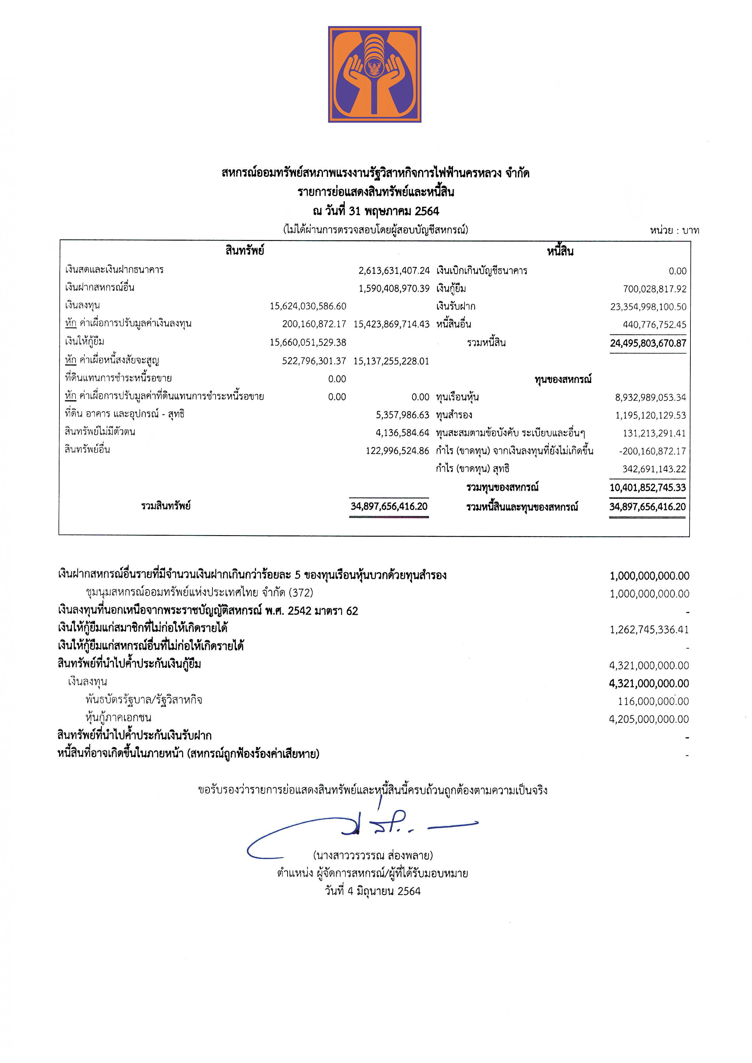 ประกาศรายการย่อแสดงสินทรัพย์และหนี้สิน ณ วันที่ 31 พฤษภาคม 2564