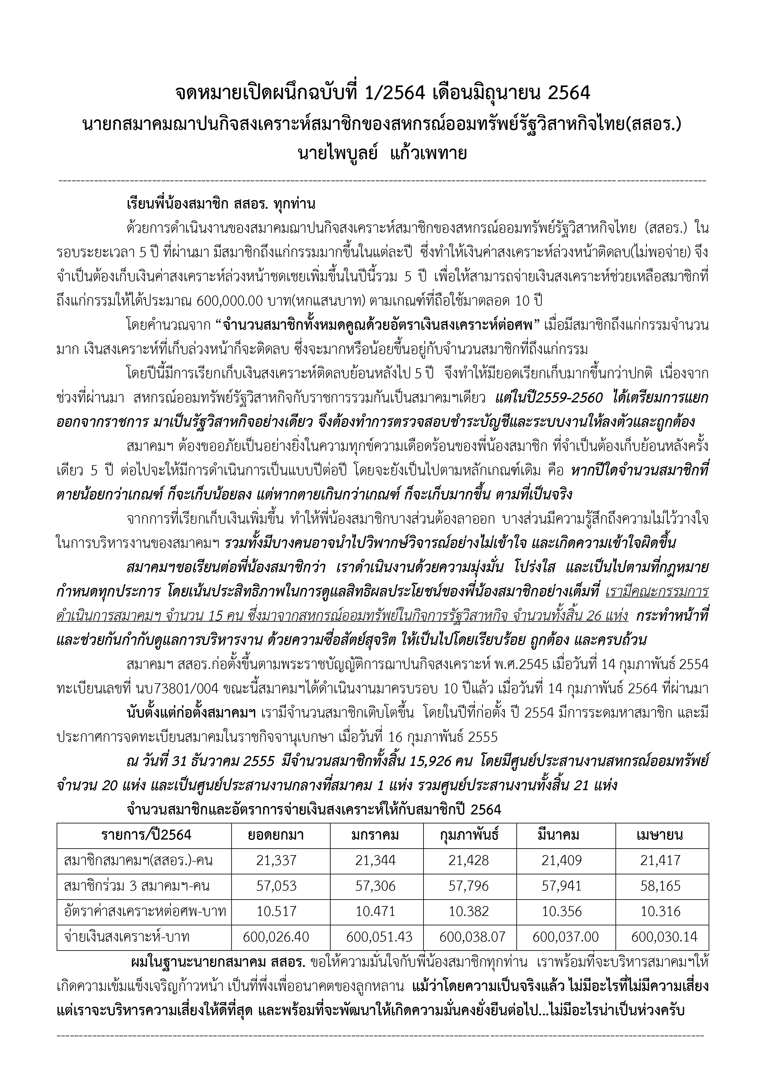 จดหมายเปิดผนึกฉบับที่ 1/2564 เดือนมิถุนายน 2564