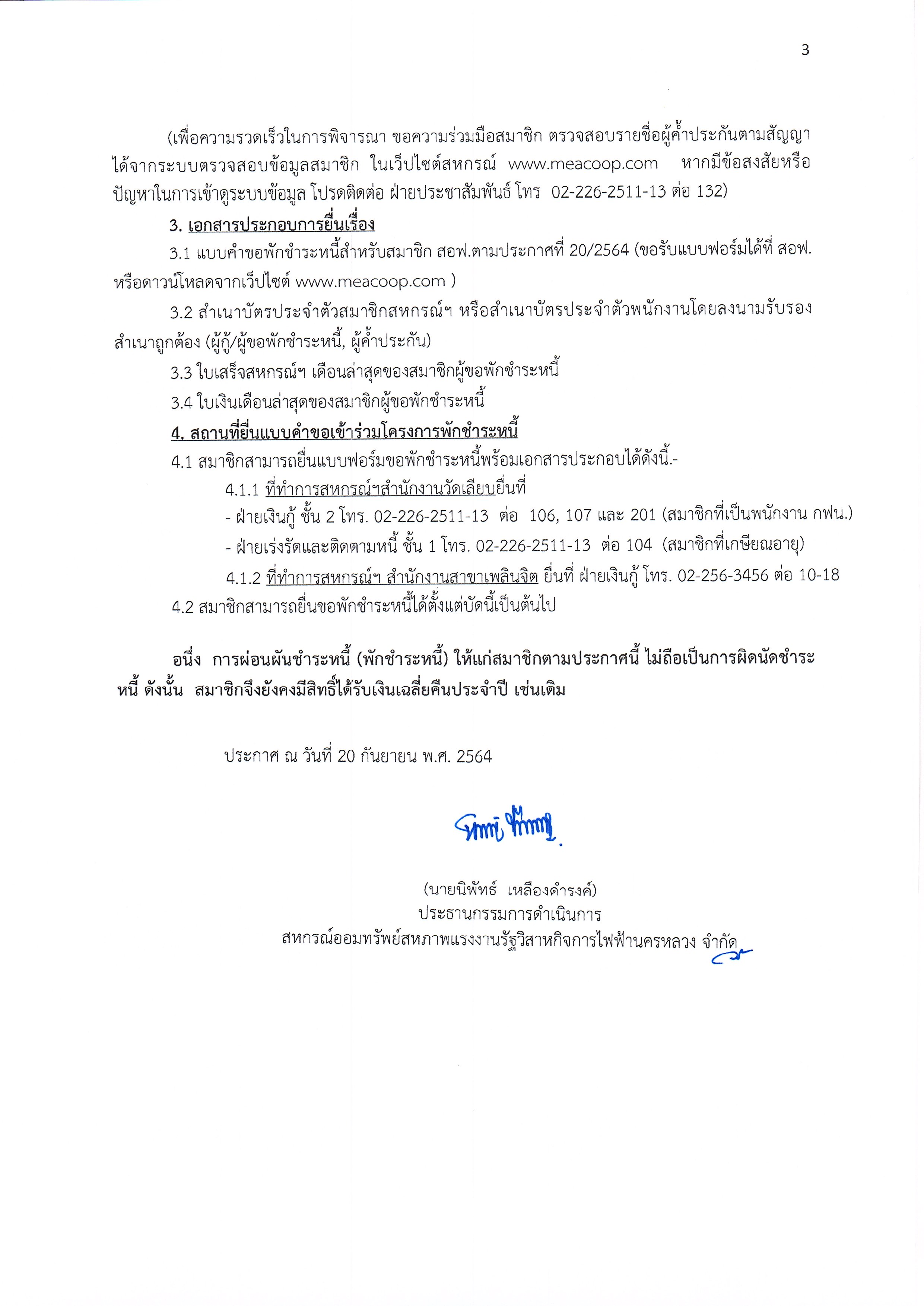 สมาชิกสามารถ ชำระเงินไม่พอหักประจำเดือน ได้ที่ สอฟ.สาขาวัดเลียบและ สาขาเพลินจิต หรือผ่าน Mobile App ธ.กรุงไทย (Krungthai Next) จ่ายบิล (รหัส 7190) ทั้งนี้ สมาชิกที่ชำระผ่าน สอฟ. App และ MEACOOP ธ.กรุงศรี ระบบแอปลิเคชั่น ยังไม่รองรับการให้บริการนี้
