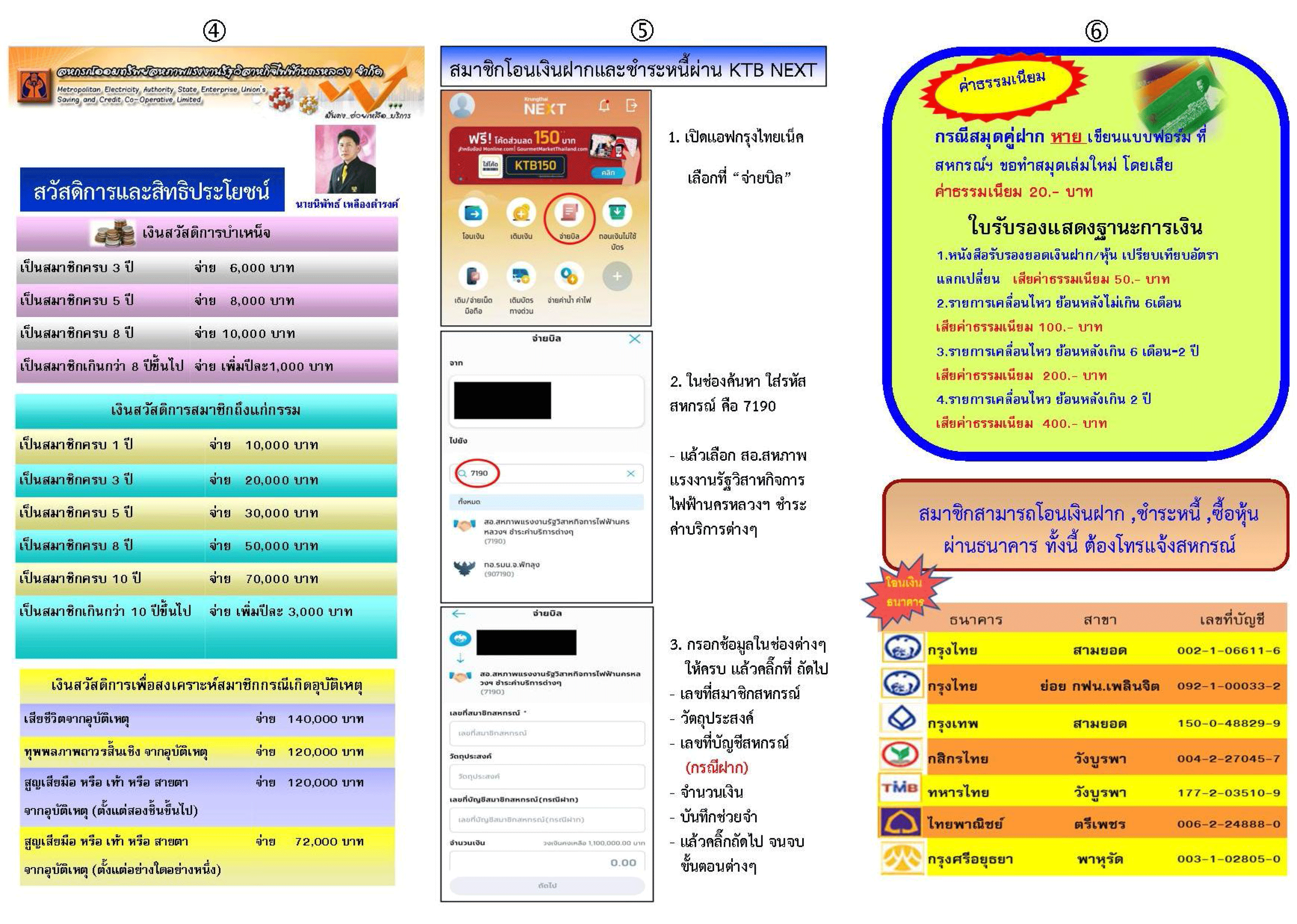 สมาชิกที่ต้องการสมัครใช้บริการเชื่อมต่อ "สอฟ.App กับ ธนาคารกรุงไทย" เพื่อความสะดวกรวดเร็ว...ต้องเตรียมอะไรบ้าง1. โหลด สอฟ. App พร้อมลงทะเบียน  2. สำเนาหน้าบัญชี ธ.กรุงไทย  3. สำเนาบัตรประชาชน