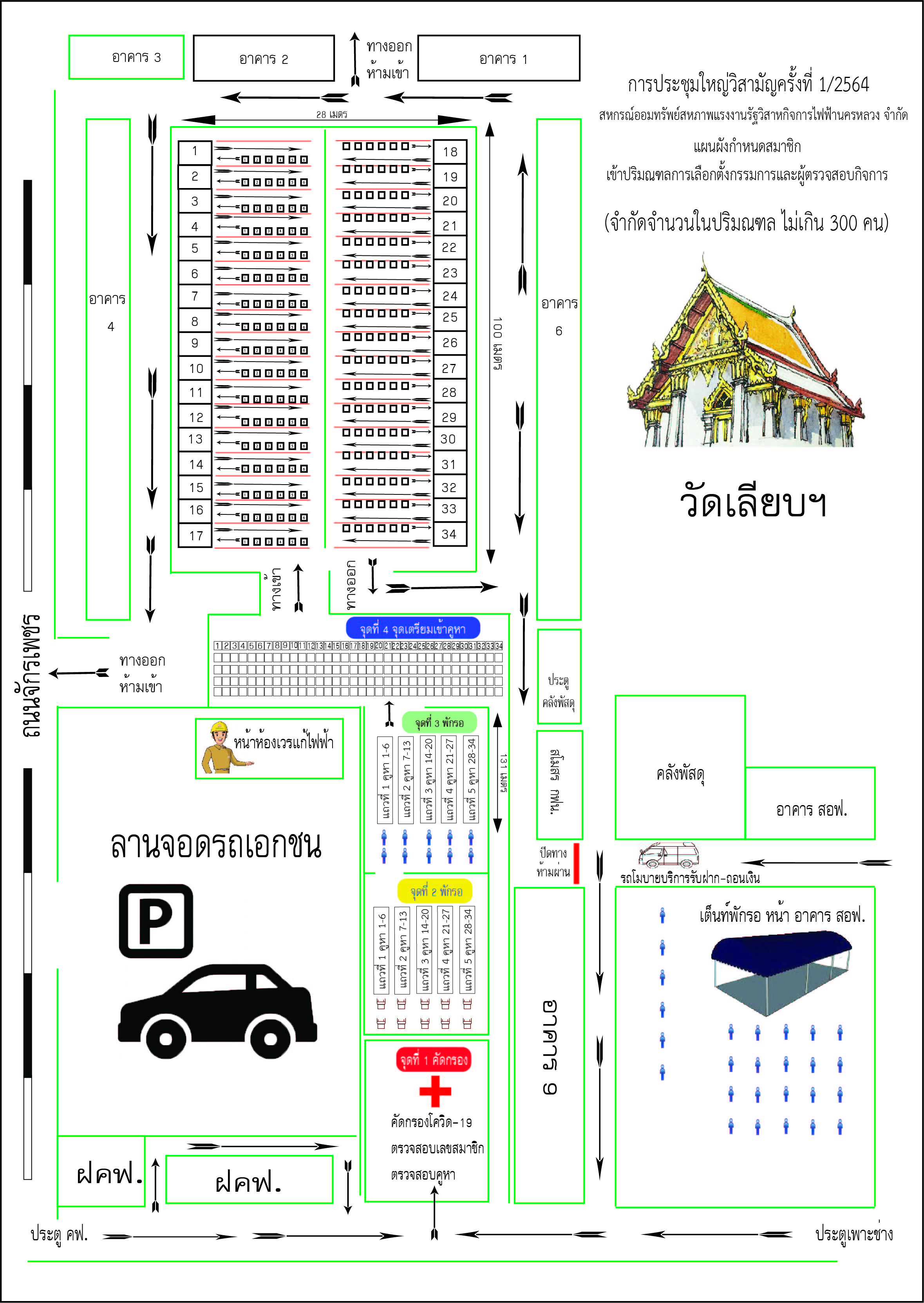 แผนผังกำหนดสมาชิกในวันประชุมใหญ่วิสามัญ ครั้งที่ 1/2564