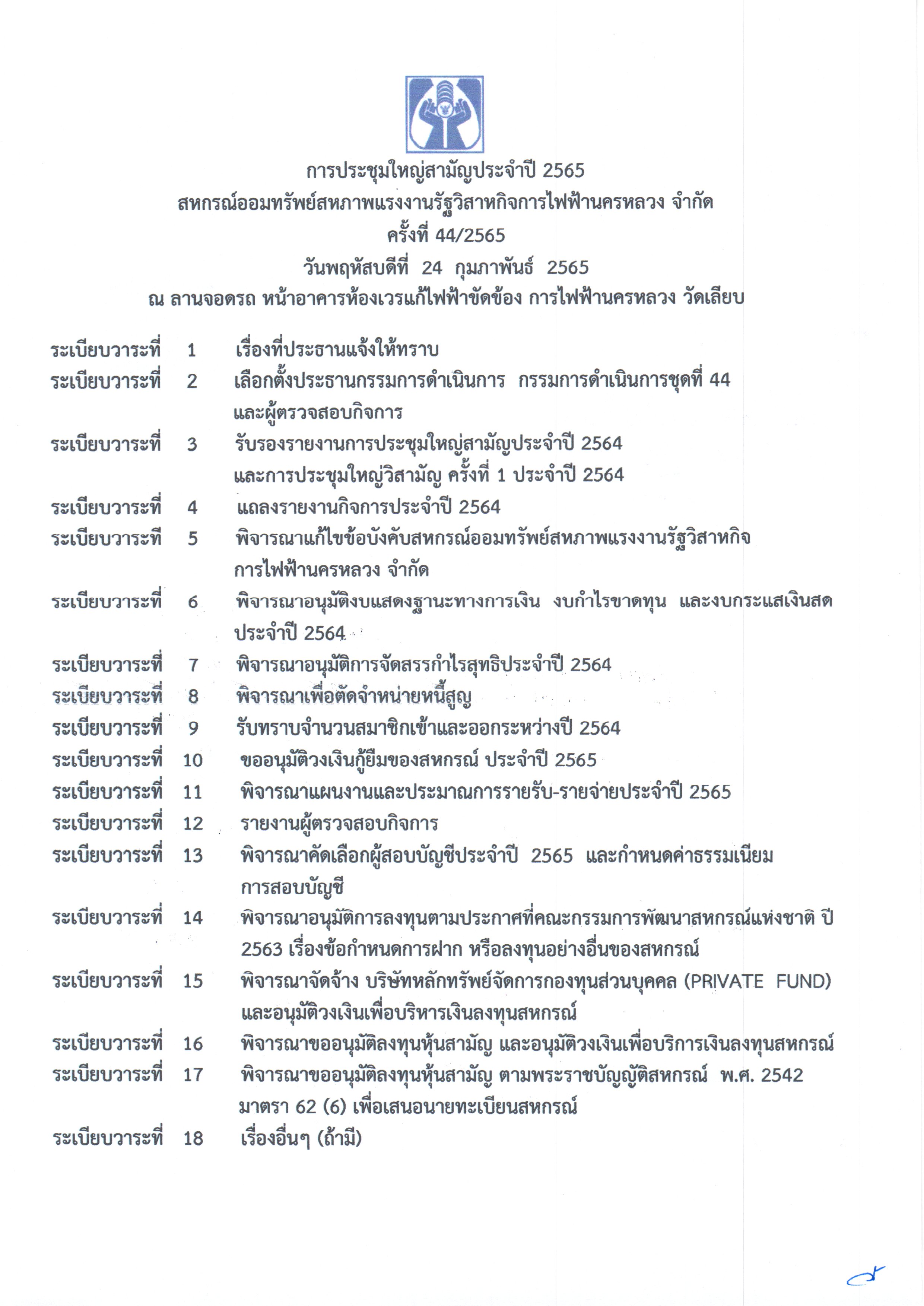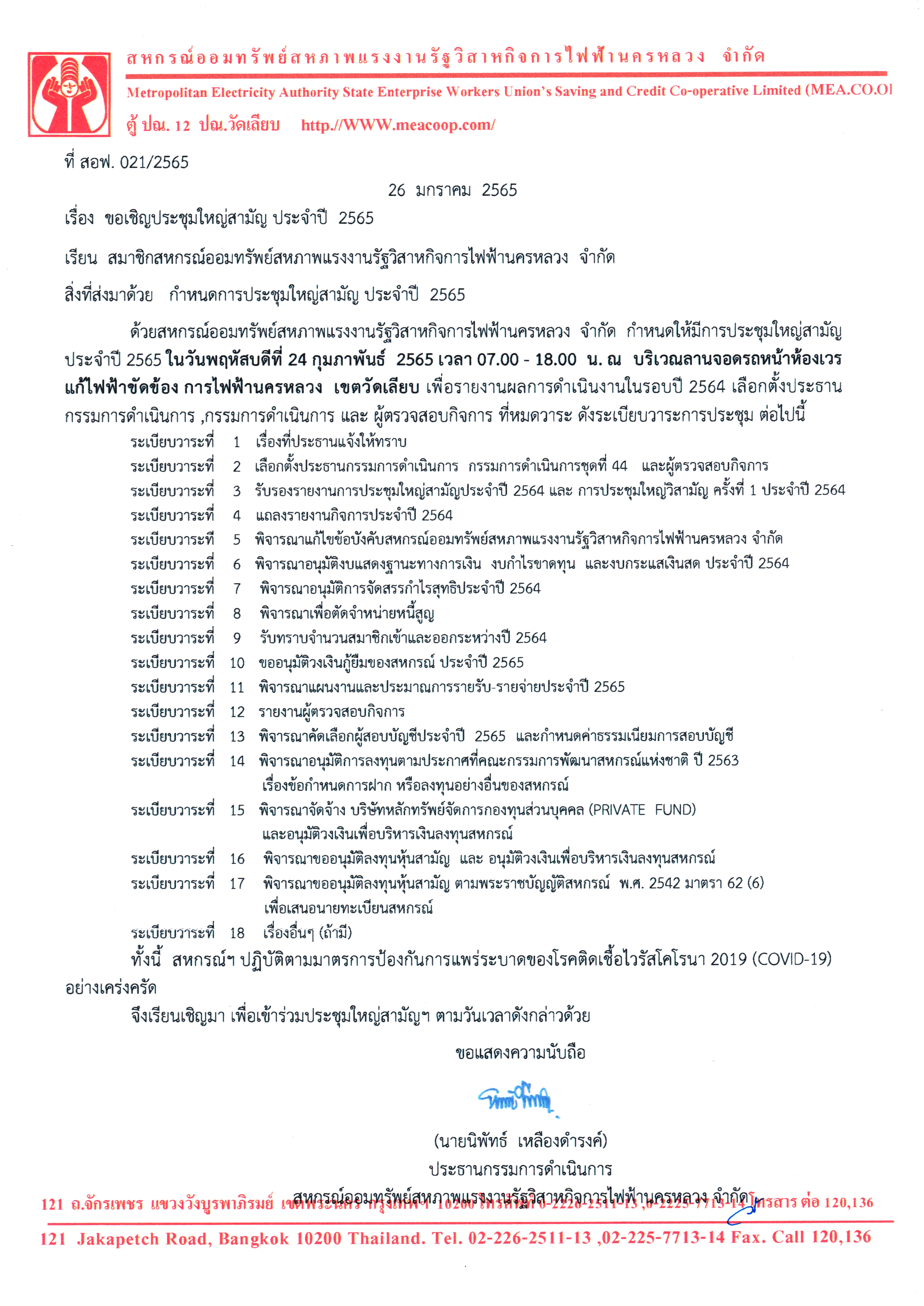 ขอเชิญประชุมใหญ่สามัญ ประจำปี 2565
