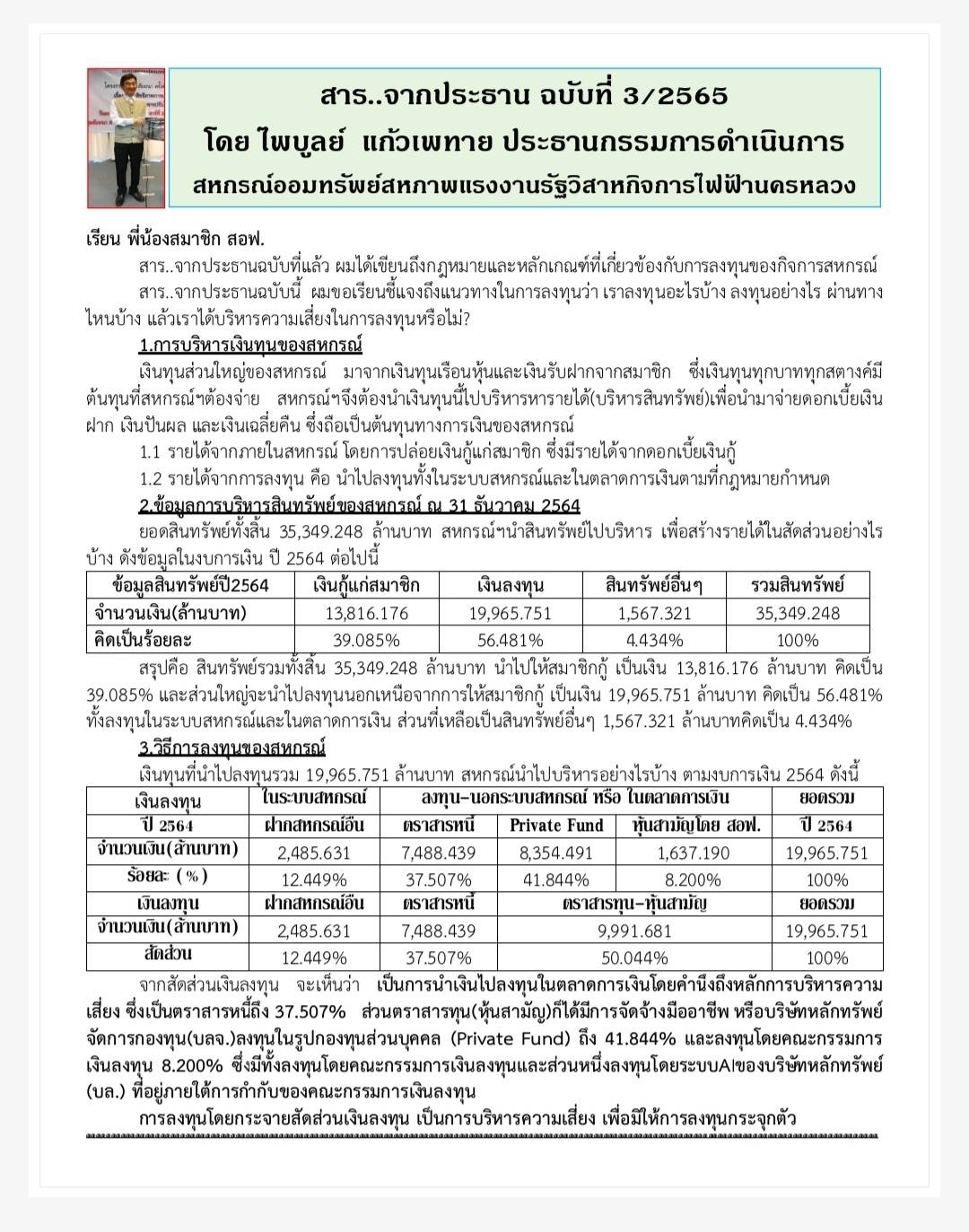 สารจากประธาน สอฟ. ฉบับที่ 1 เดือน พฤษภาคม 2569