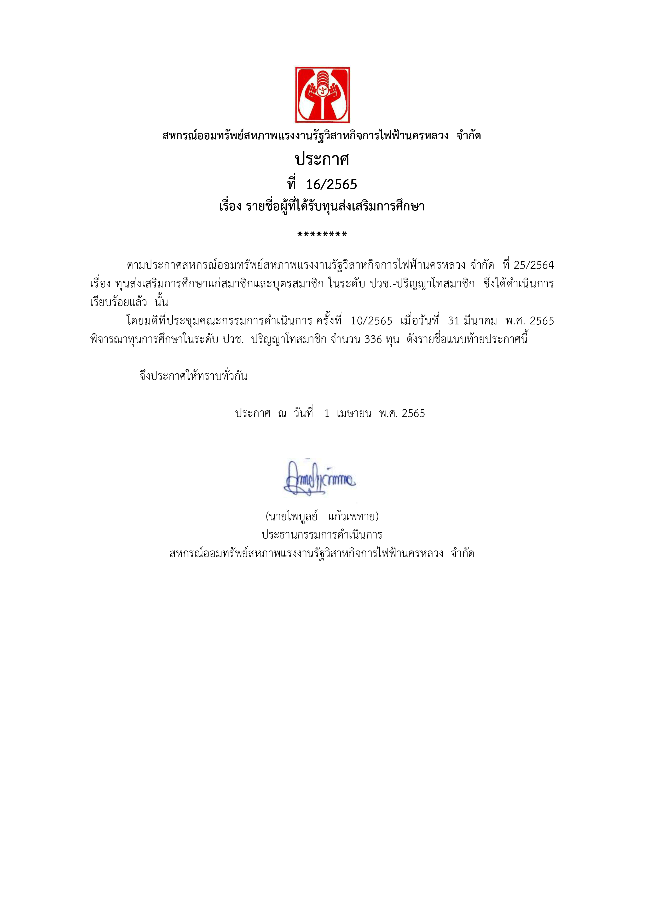 รายชื่อผู้ได้รับทุนส่งเสริมการศึกษา