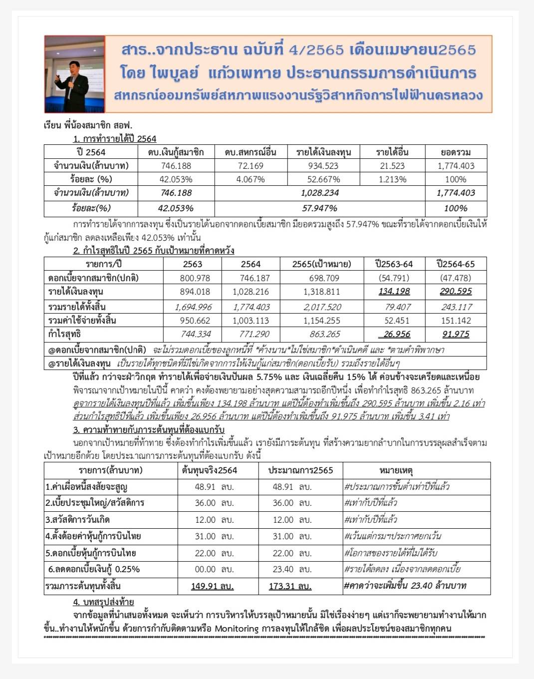 สารจากประธาน สอฟ. ฉบับที่ 1 เดือน พฤษภาคม 2569
