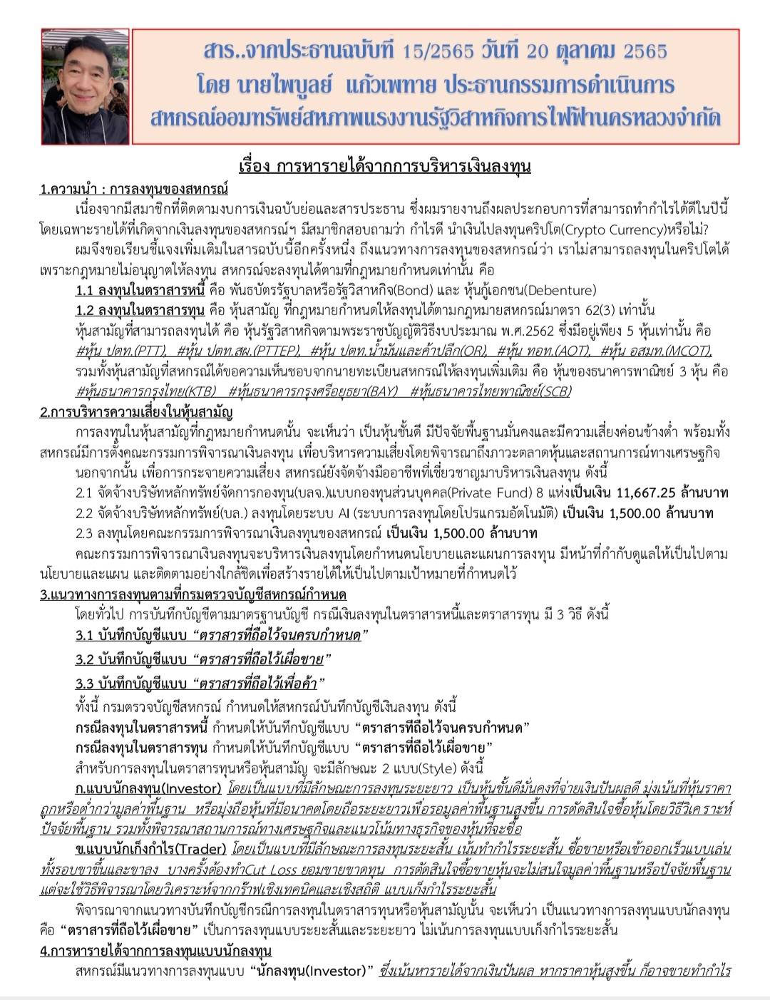 • สารจากประธานฉบับที่ 15/2565 วันที่ 20 ตุลาคม 2565