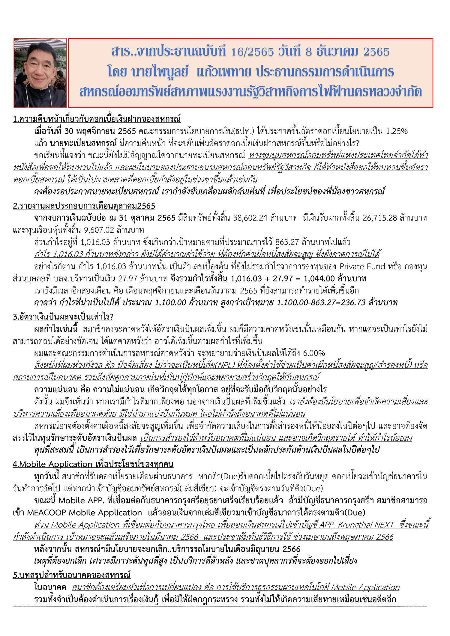 • สารจากประธานฉบับที่ 16/2565 ธันวาคม 2565