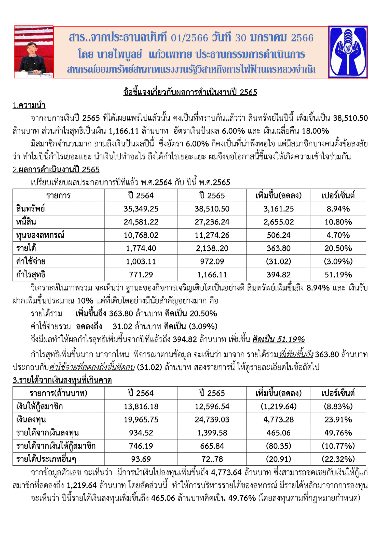 สารจากประธานฉบับที่ 1/2566 30 มกราคม 2566