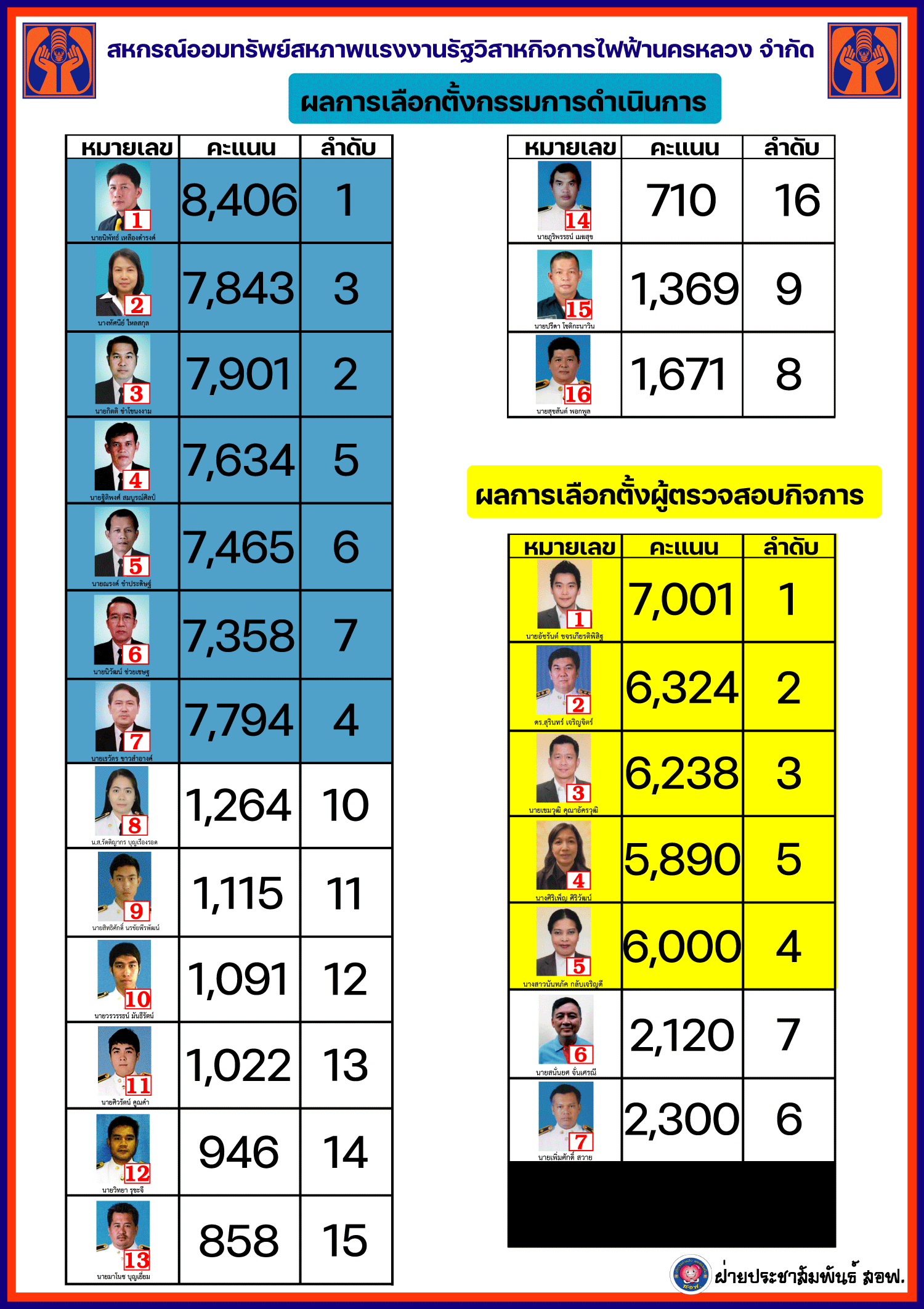 • ผลการเลือกตั้งกรรมการดำเนินการ และผู้ตรวจสอบกิจการประจำปี 2566