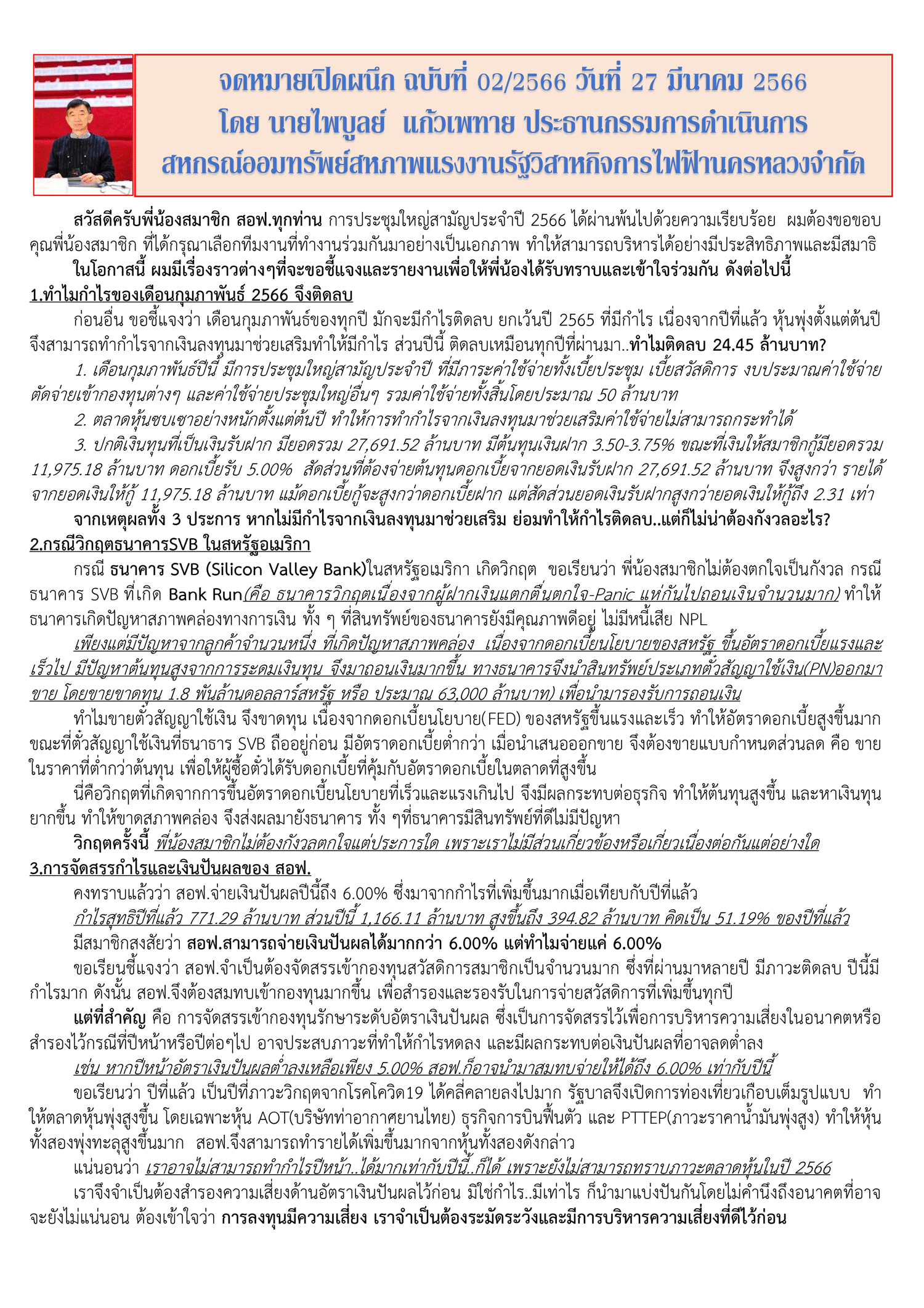 จดหมายเปิดผนึก ฉบับที่ 2/2566 วันที่ 27 มีนาคม 2566