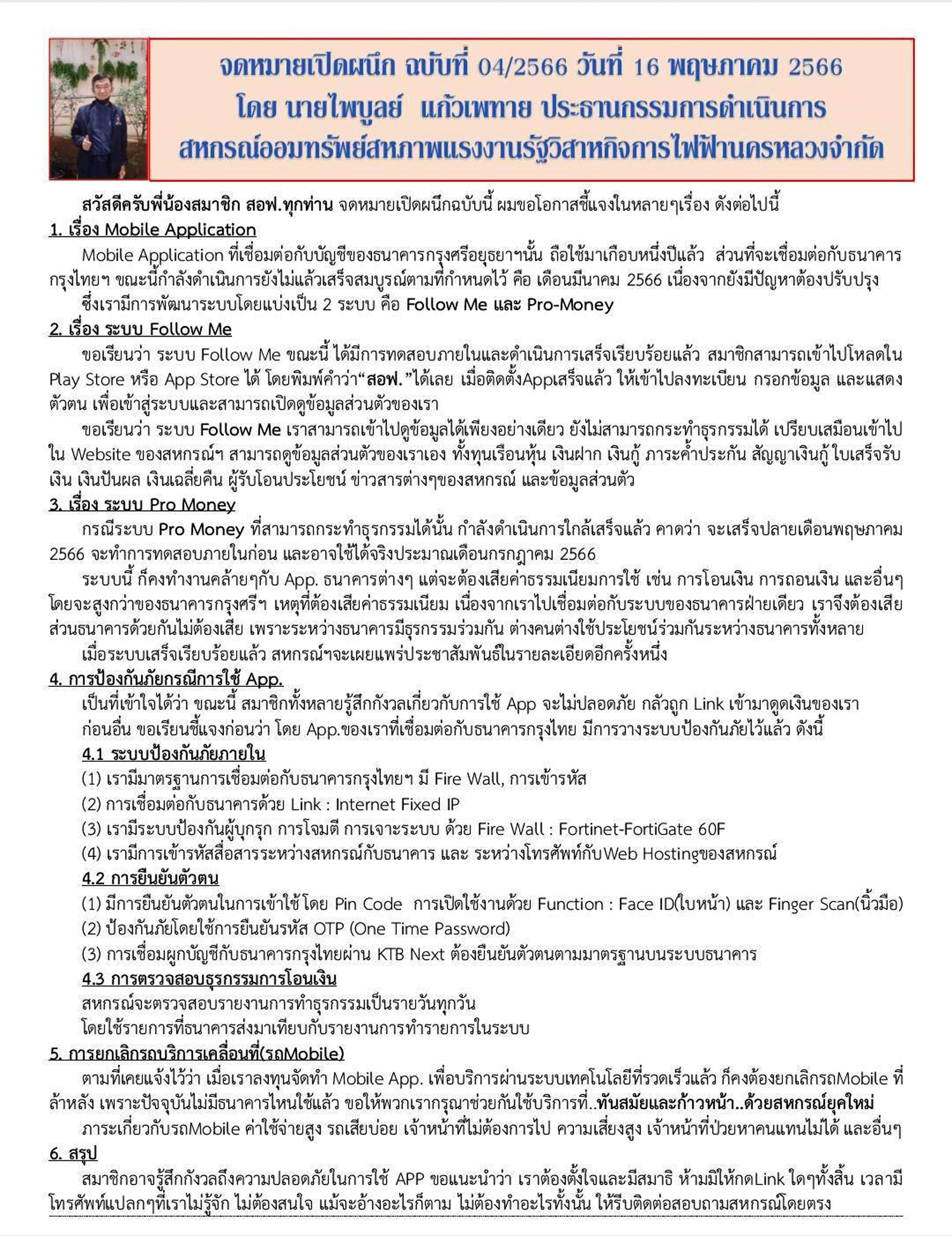 จดหมายเปิดผนึก ฉบับที่ 4/2566 วันที่ 16 พฤษภาคม 2566