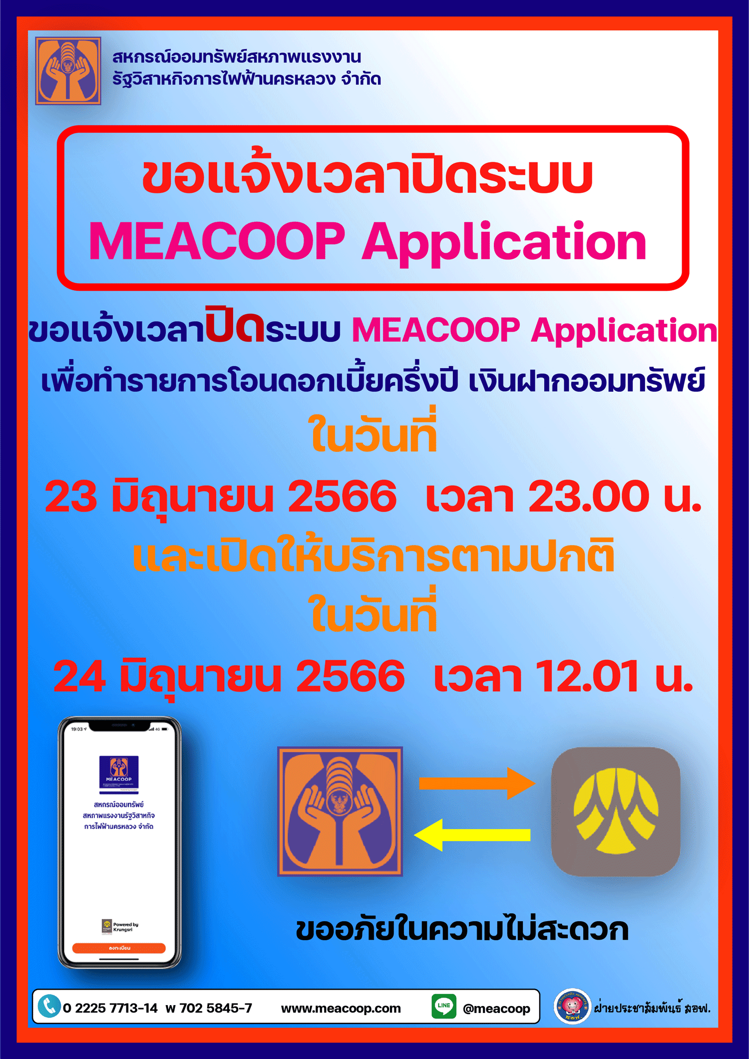 • ประกาศปิดระบบ MEA COOP Application ชั่วคราว