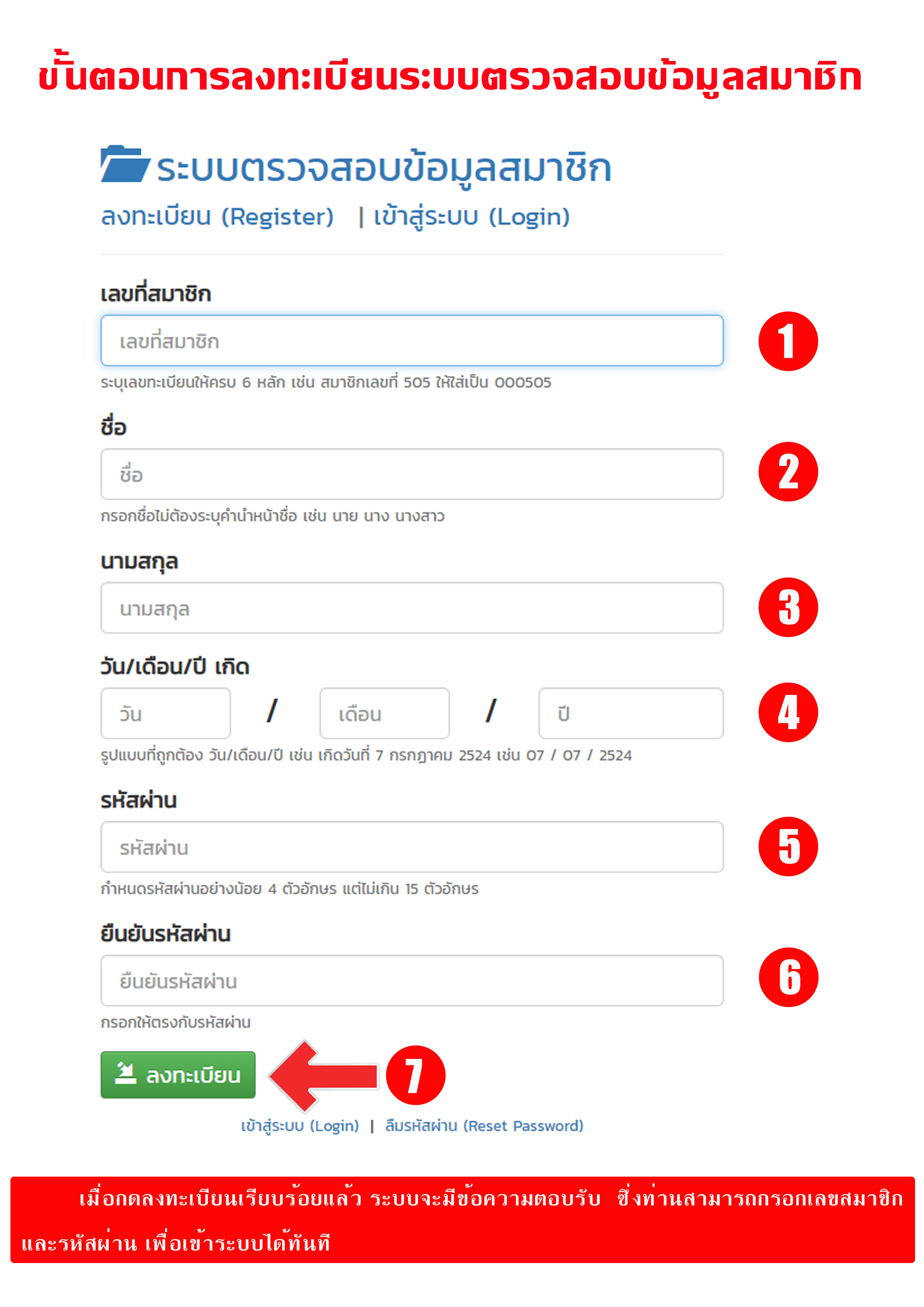- วิธีการสมัครระบบตรวจสอบข้อมูลสมาชิก