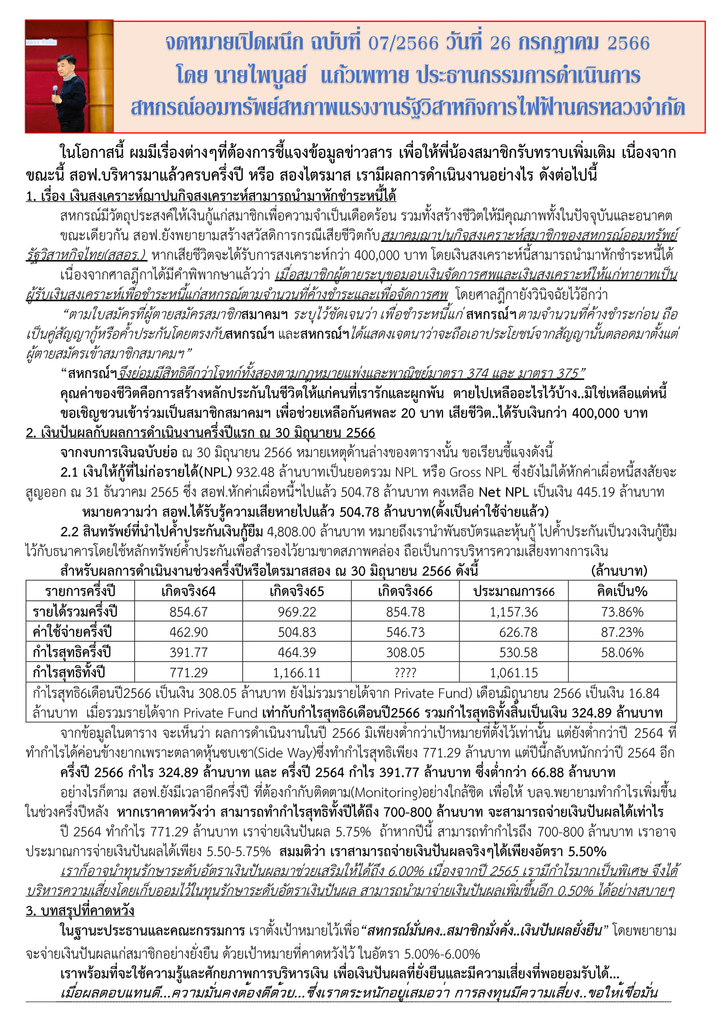 จดหมายเปิดผนึก ฉบับที่ 7/2566 วันที่ 26 กรกฎาคม 2566