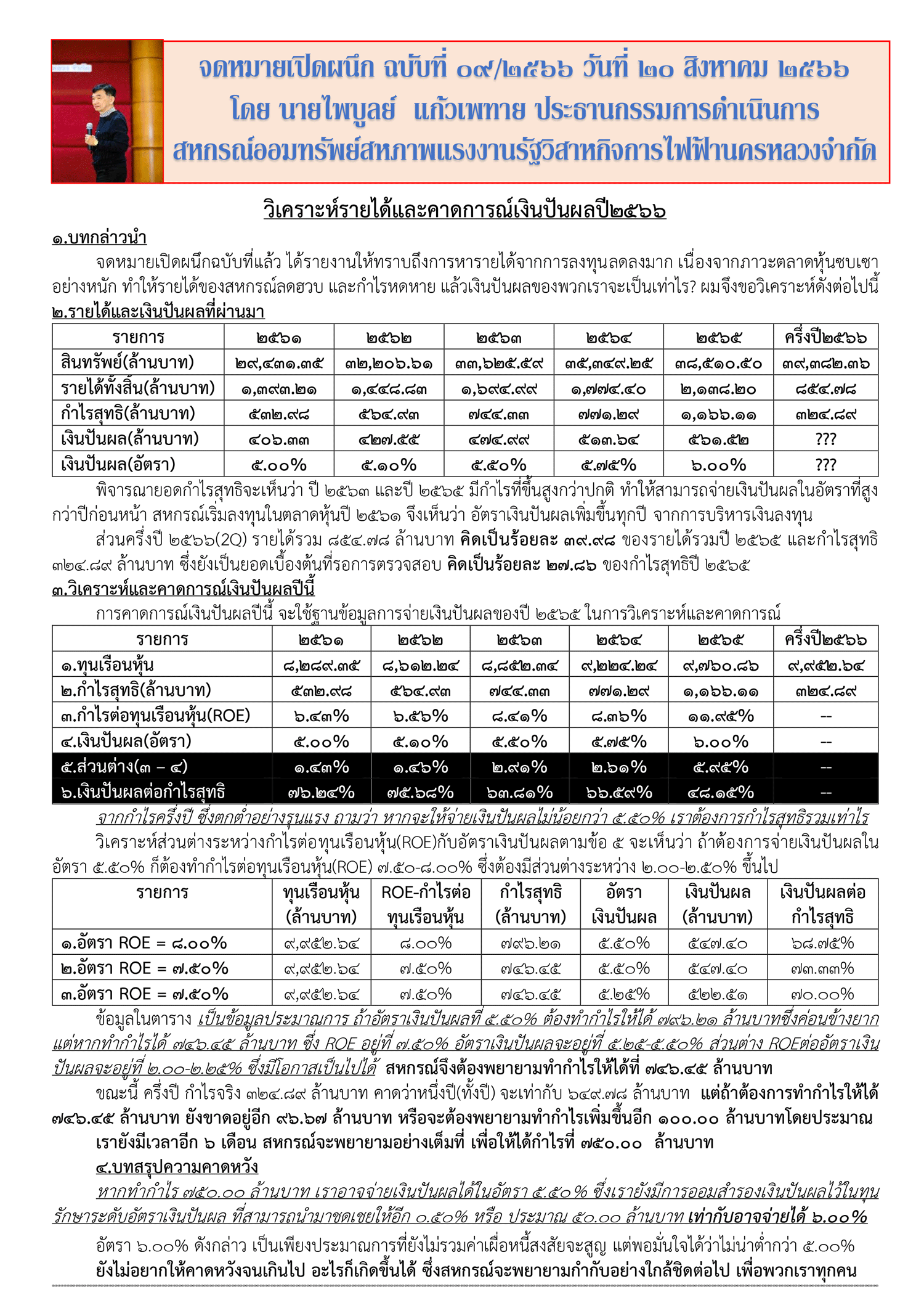 จดหมายเปิดผนึก ฉบับที่ 9/2566 วันที่ 20 สิงหาคม 2566