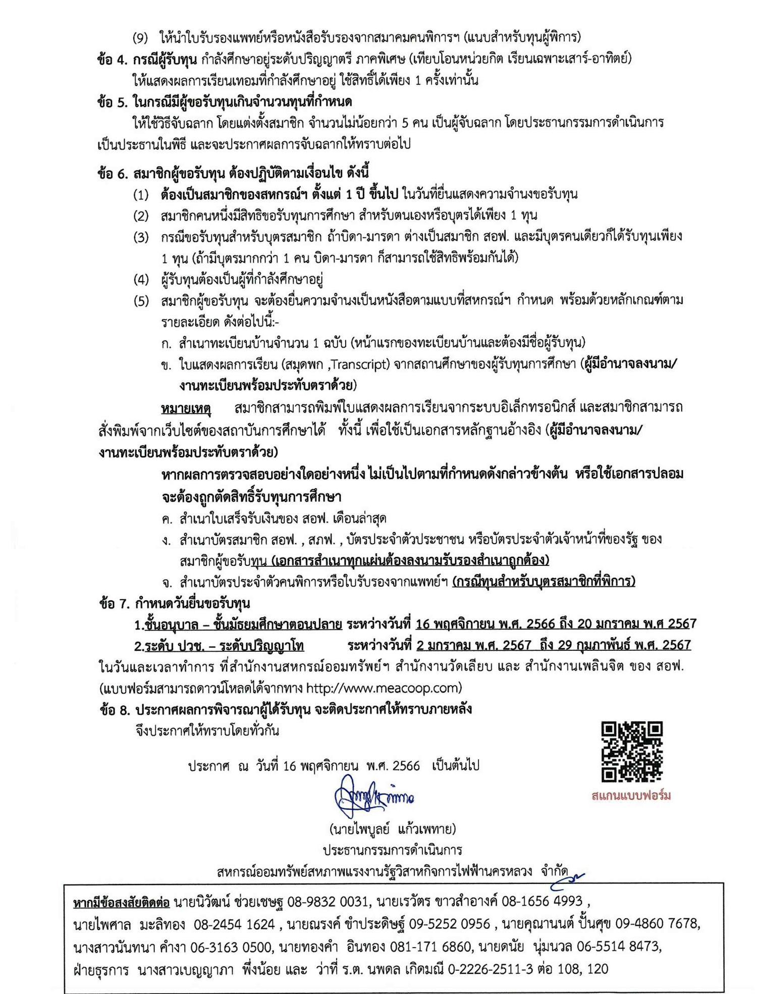 • ประกาศที่ 29/2566 เรื่อง ทุนการศึกษาแก่สมาชิกและบุตรสมาชิก