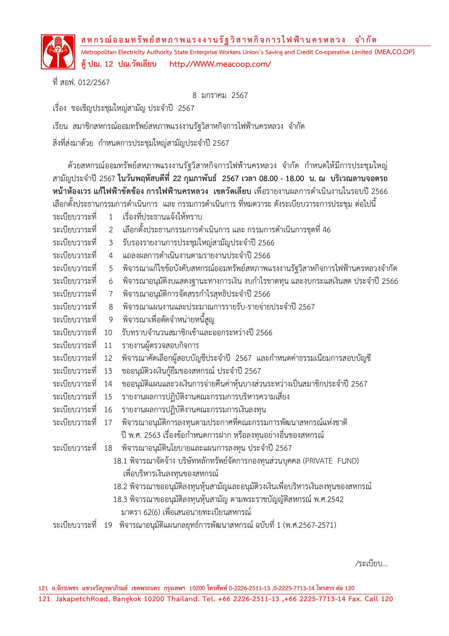 ดาวน์โหลด กำหนดการประชุมใหญ่