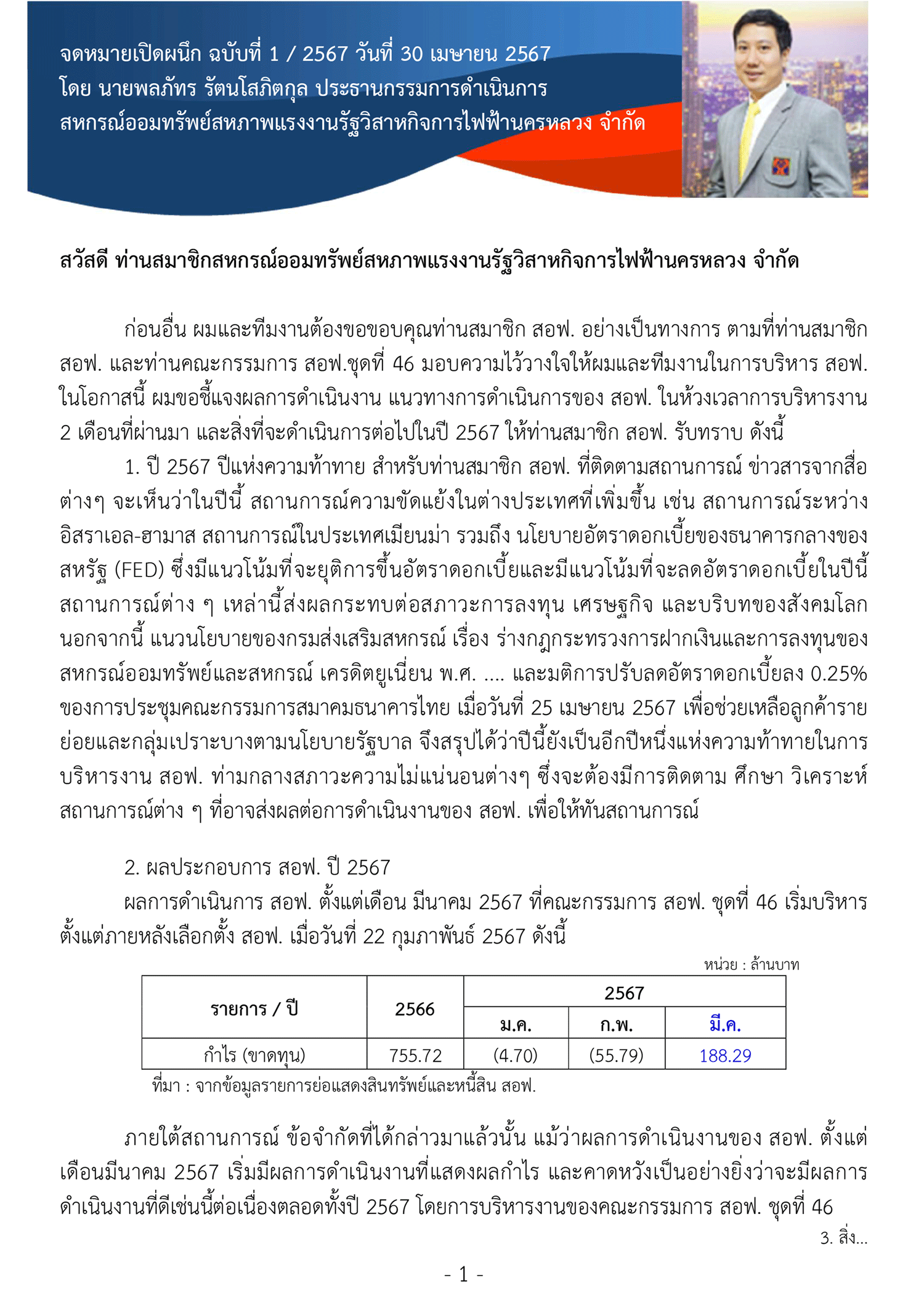 จดหมายเปิดผนึก ฉบับที่ 1 เดือน พฤษภาคม 2569