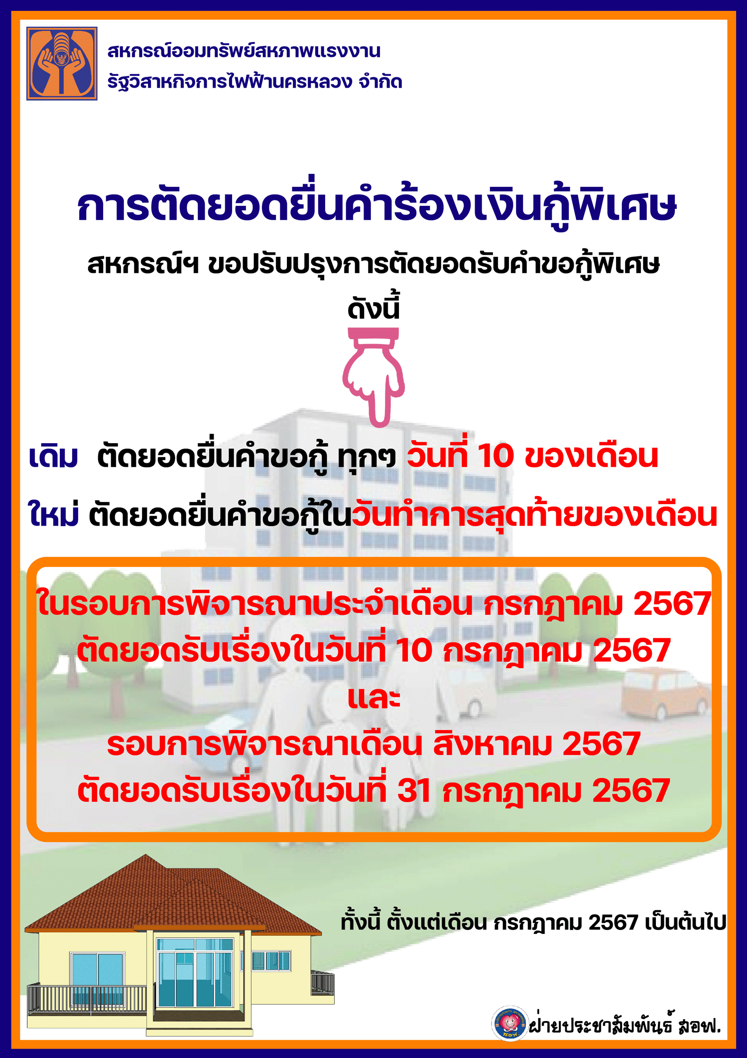 • ประกาศ เรื่อง การปรับปรุงการตัดยอดรับคำขอกู้พิเศษ