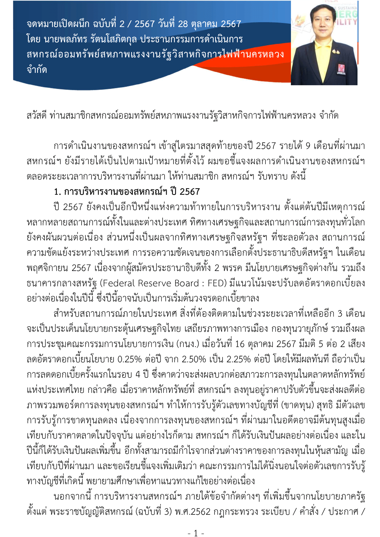 จดหมายเปิดผนึก ฉบับที่ 2/2567 วันที่ 28 ตุลาคม 2567