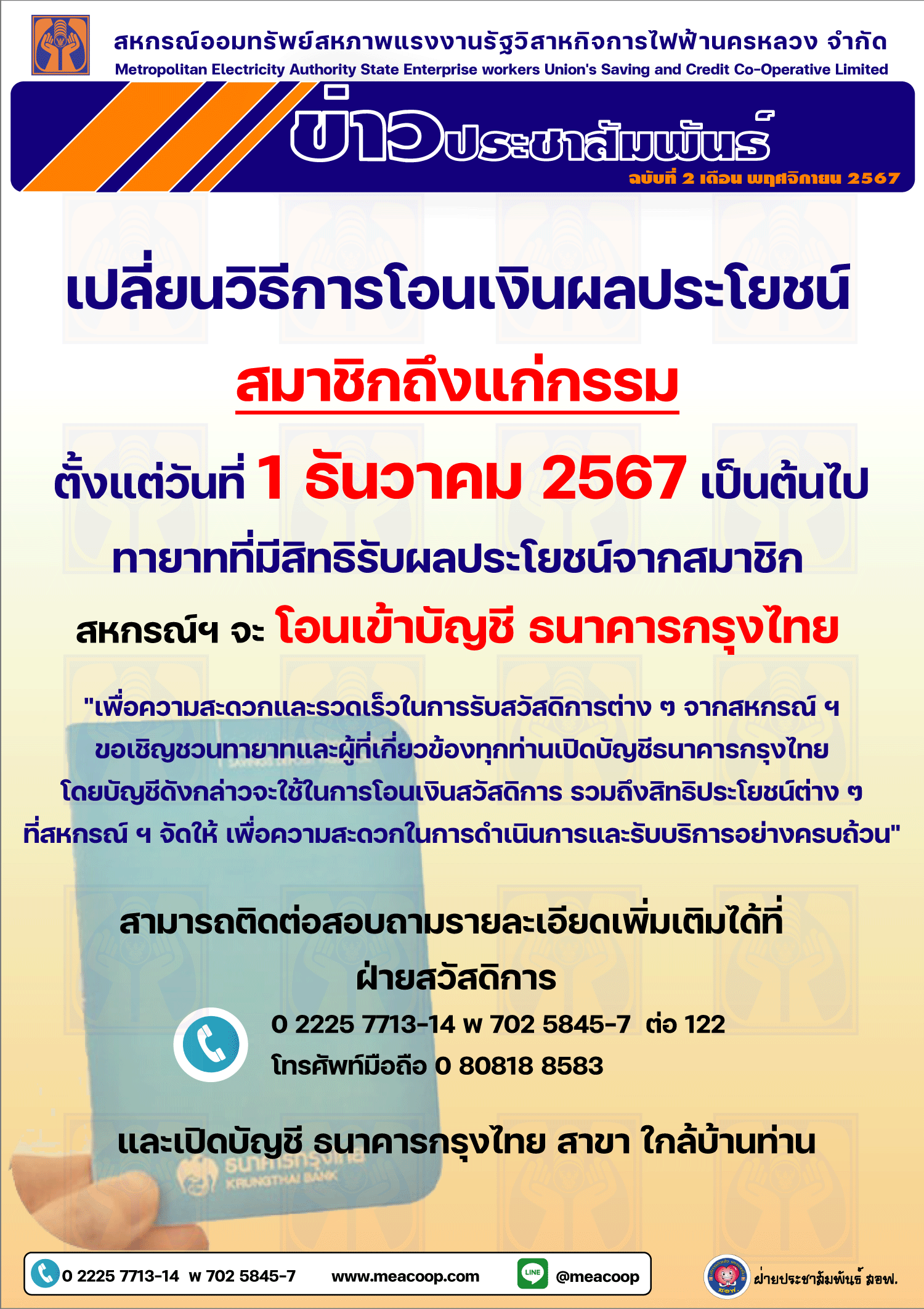 • ประกาศ เรื่อง เปลี่ยนวิธีการโอนเงินผลประโยชน์