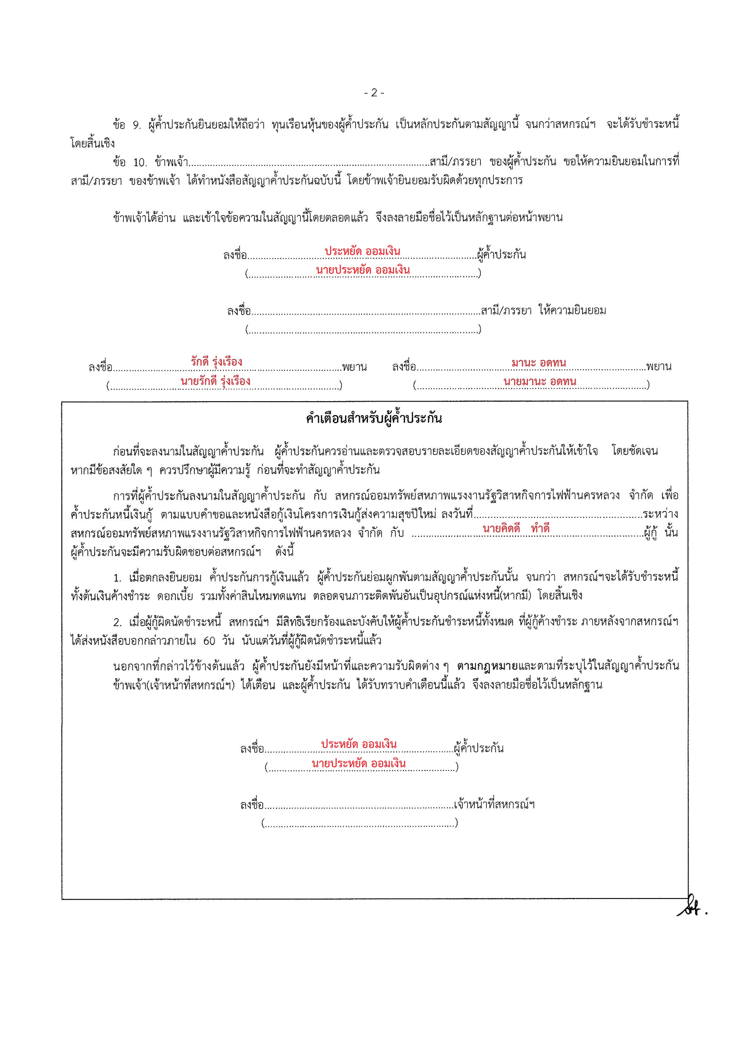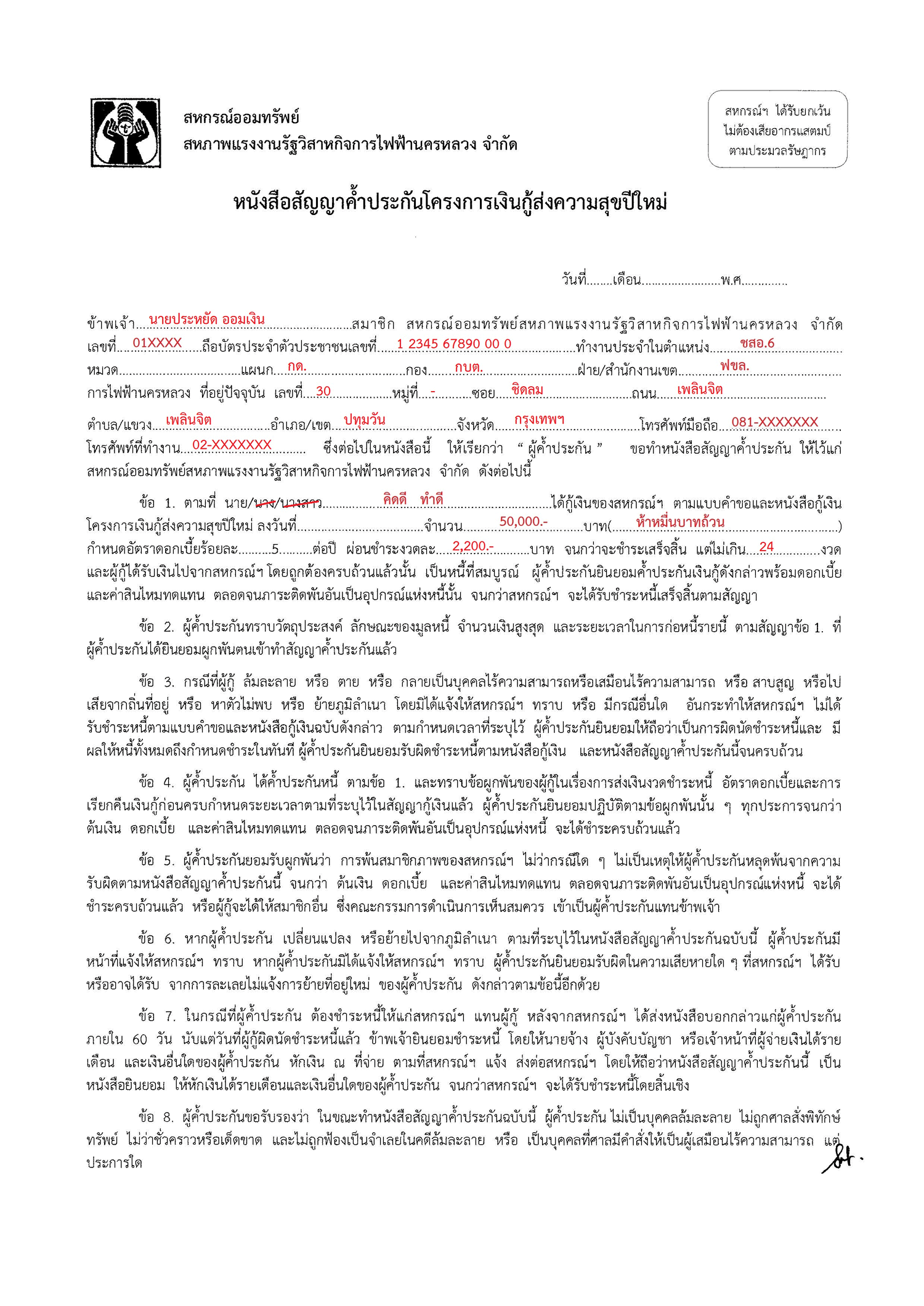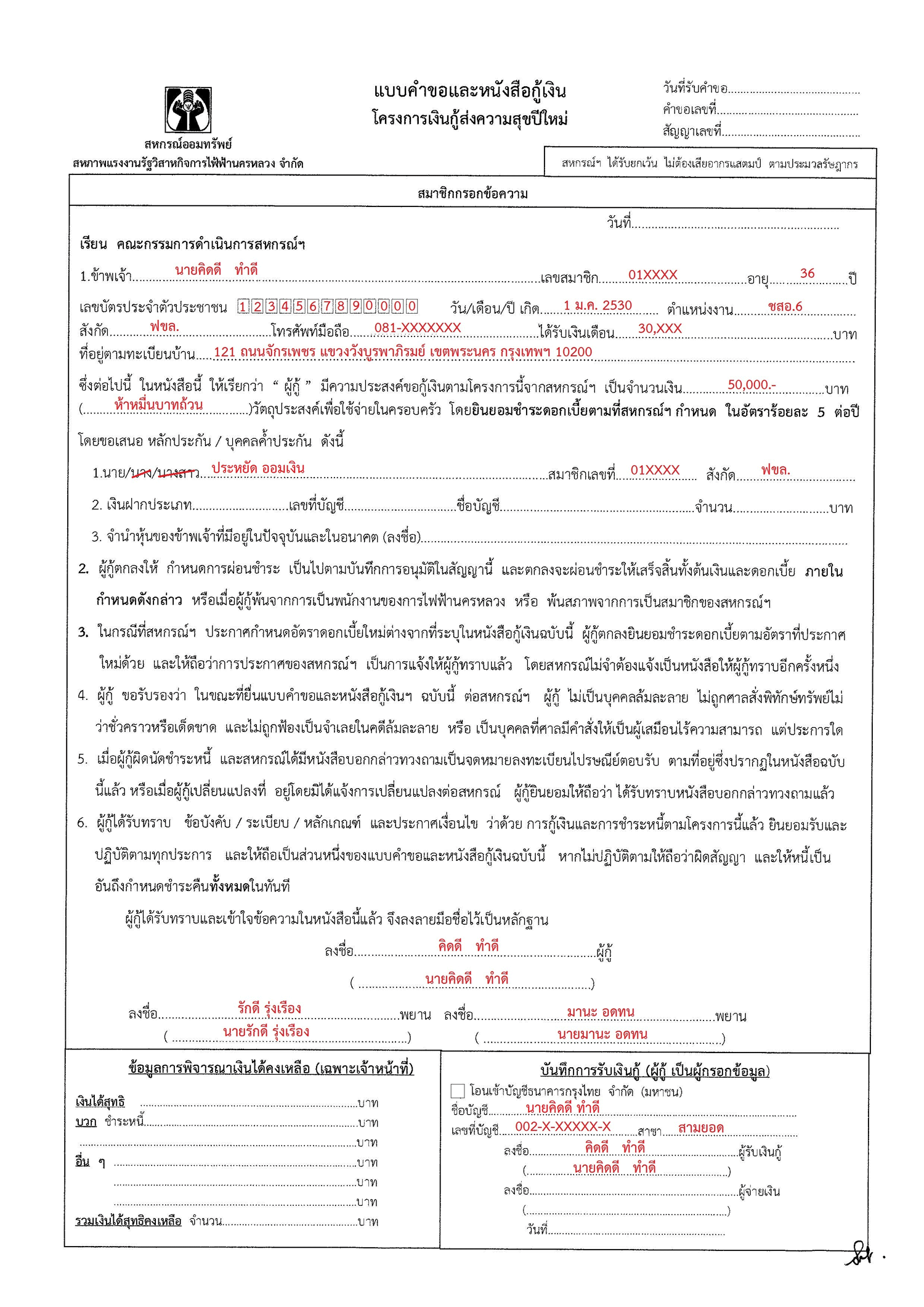 • ตัวอย่างการกรอกแบบฟอร์มโครงการเงินกู้ส่งความสุขปีใหม่