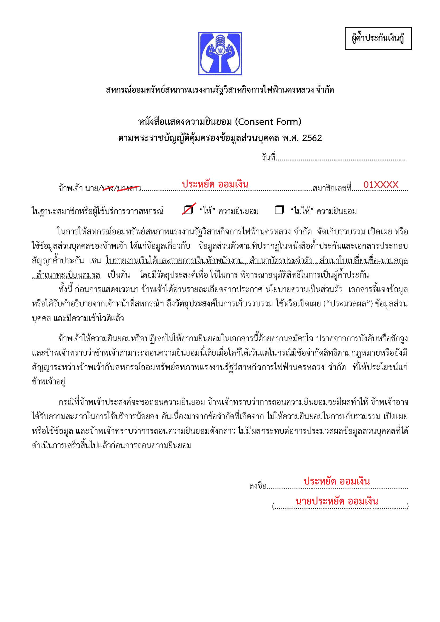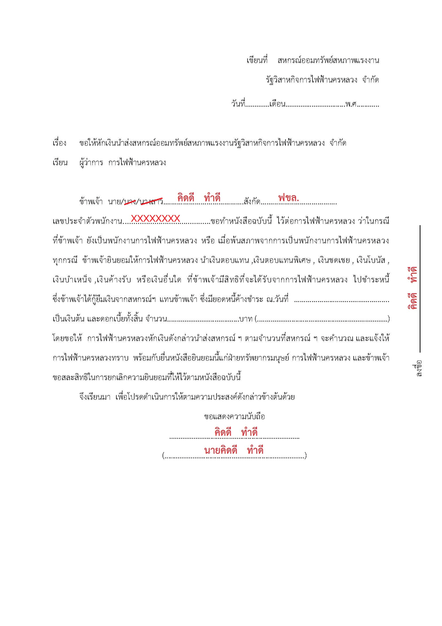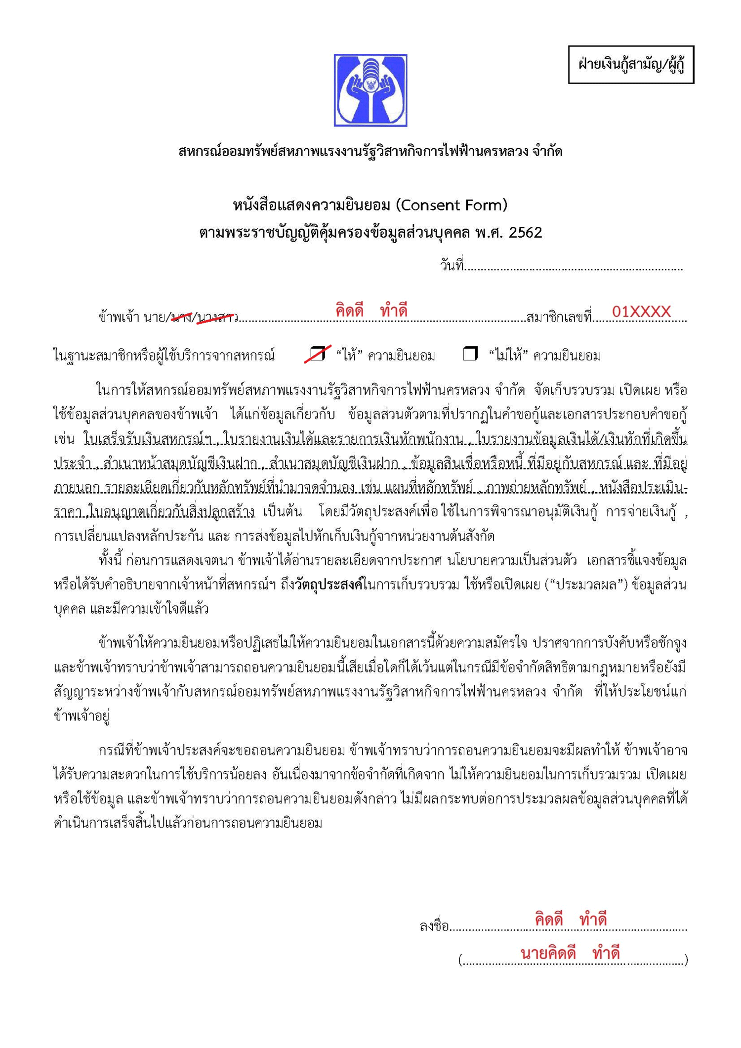 • ตัวอย่างการกรอกแบบฟอร์มโครงการเงินกู้ส่งความสุขปีใหม่