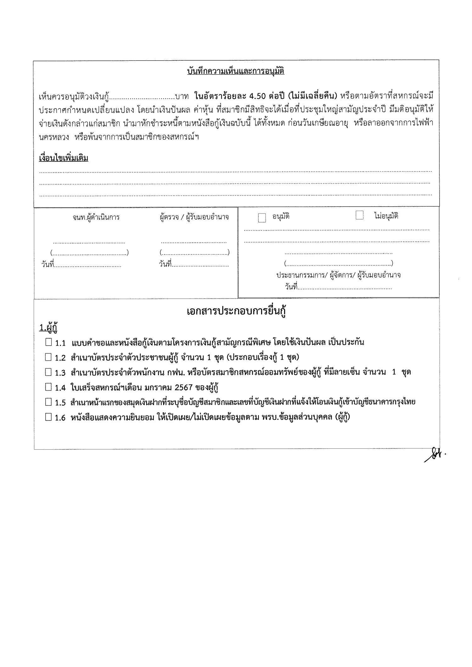 • ตัวอย่างการกรอกแบบฟอร์มโครงการเงินกู้สามัญกรณีพิเศษ โดยใช้เงินปันผลเป็นประกัน