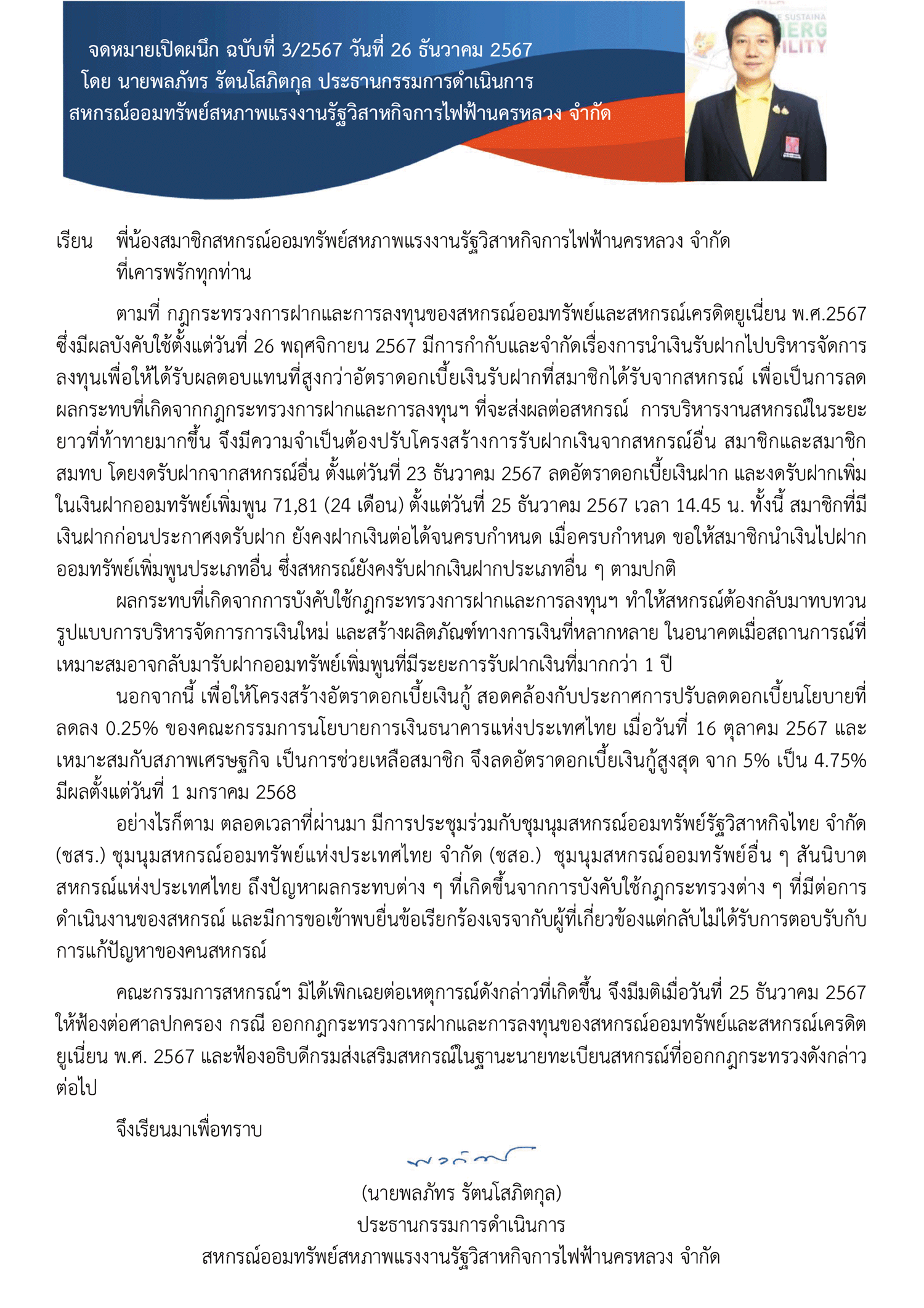 จดหมายเปิดผนึก ฉบับที่ 3/2567 วันที่ 26 ธันวาคม 2567