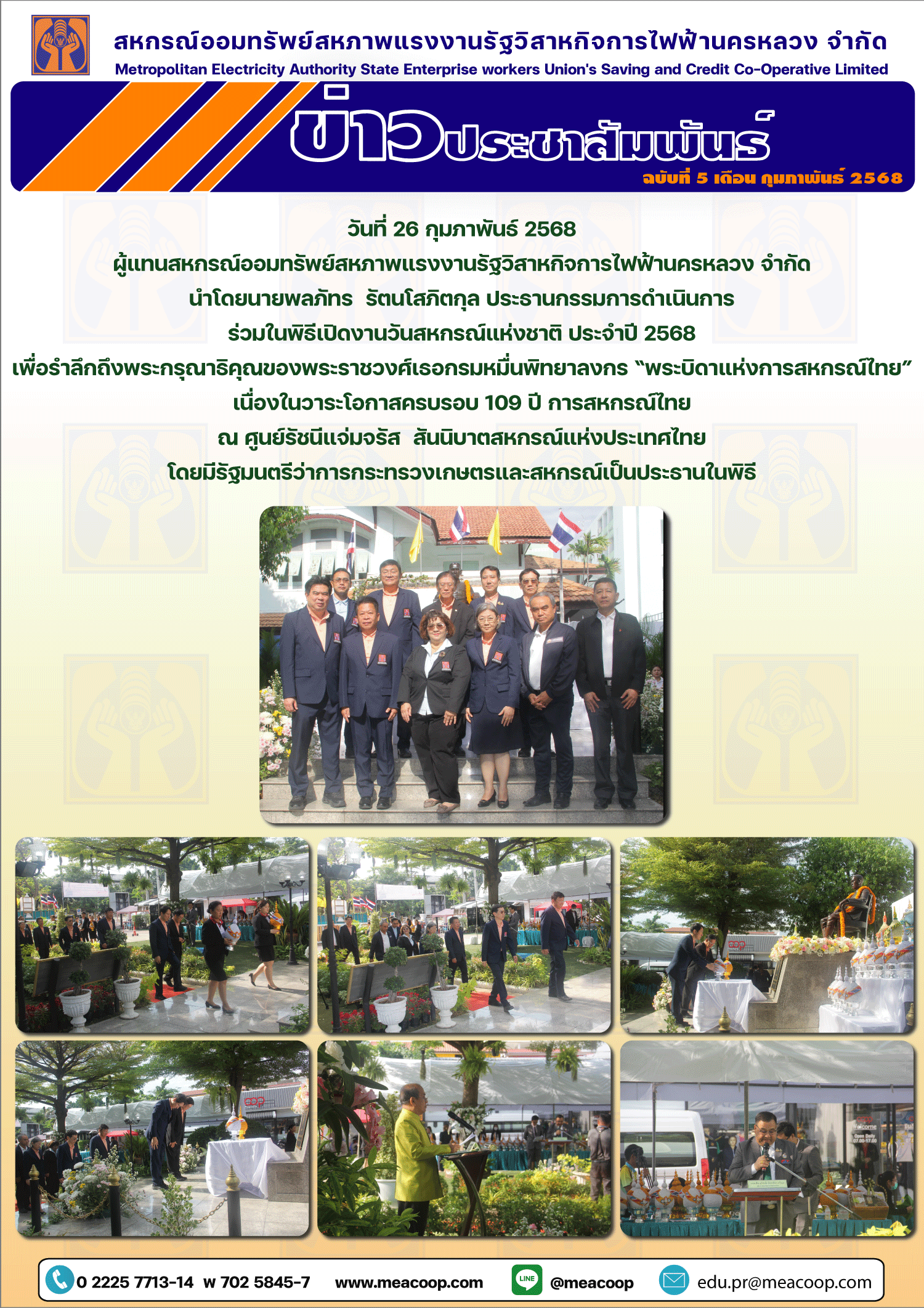 • สอฟ. เข้าร่วมพิธีเปิดงานวันสหกรณ์แห่งชาติ 26 กุมภาพันธ์ 2568