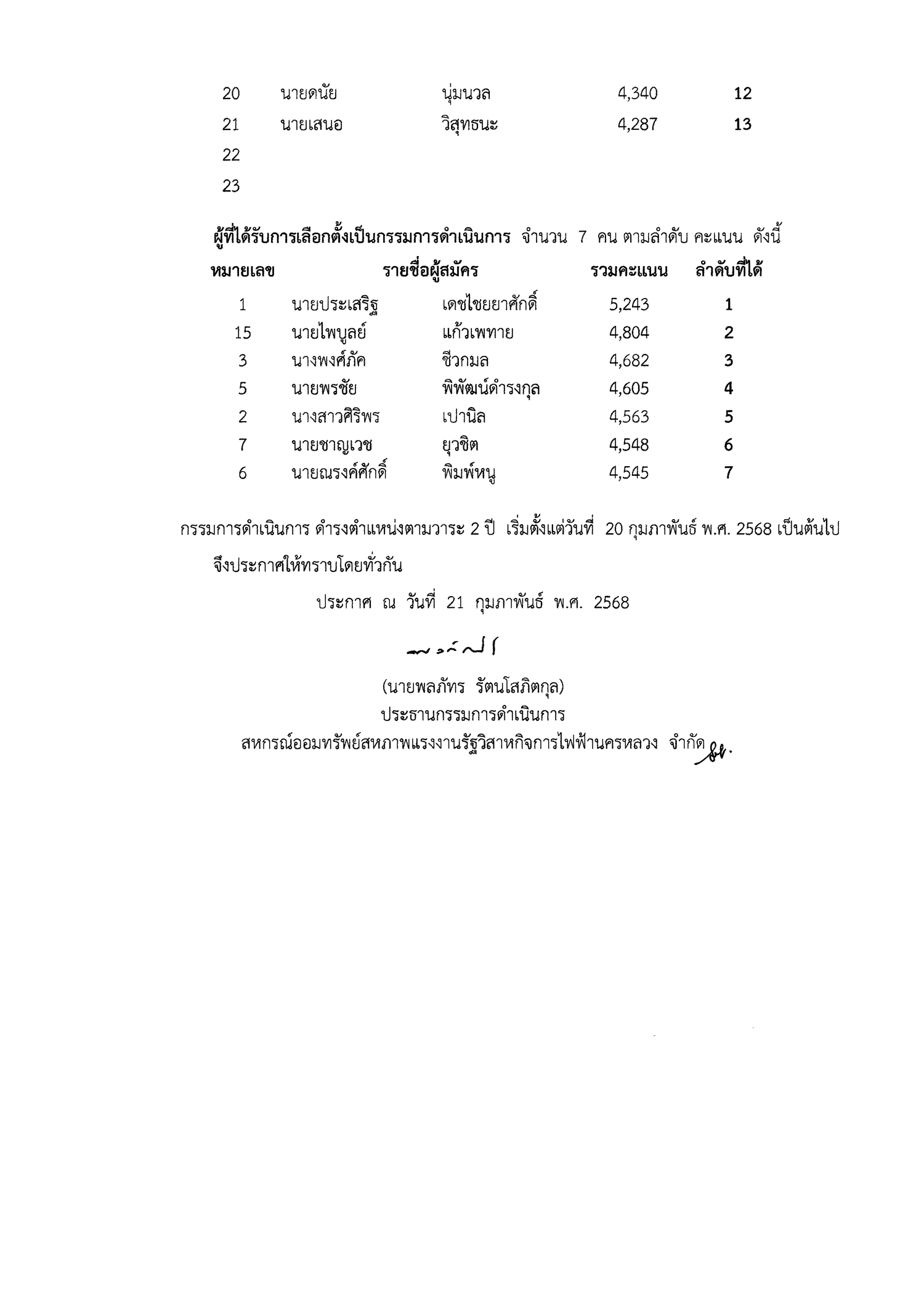 • ประกาศที่ 4/2568 เรื่อง รายงานผลการเลือกตั้งกรรมการดำเนินการ ประจำปี 2568