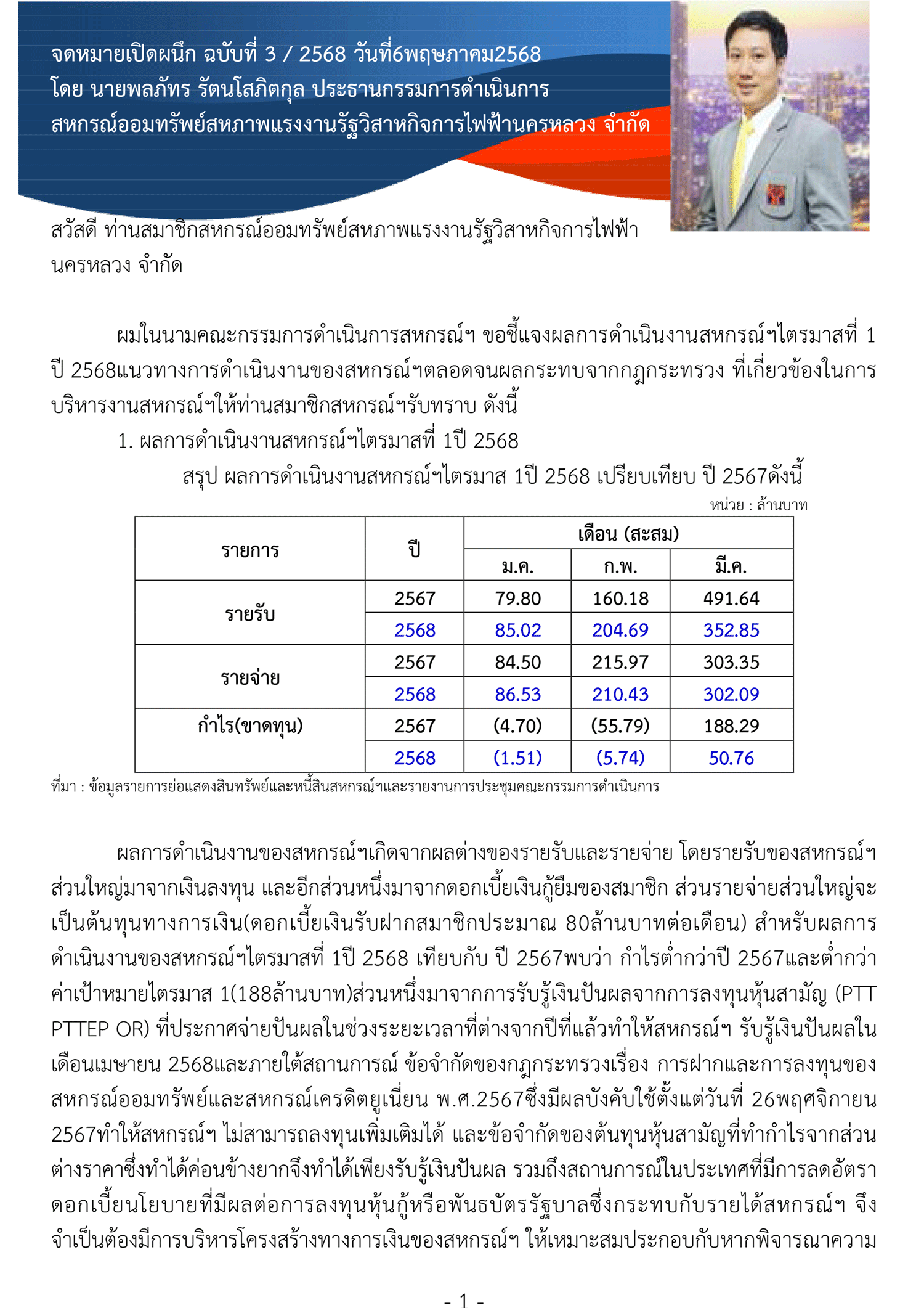 จดหมายเปิดผนึก ฉบับที่ 1 เดือน พฤษภาคม 2569