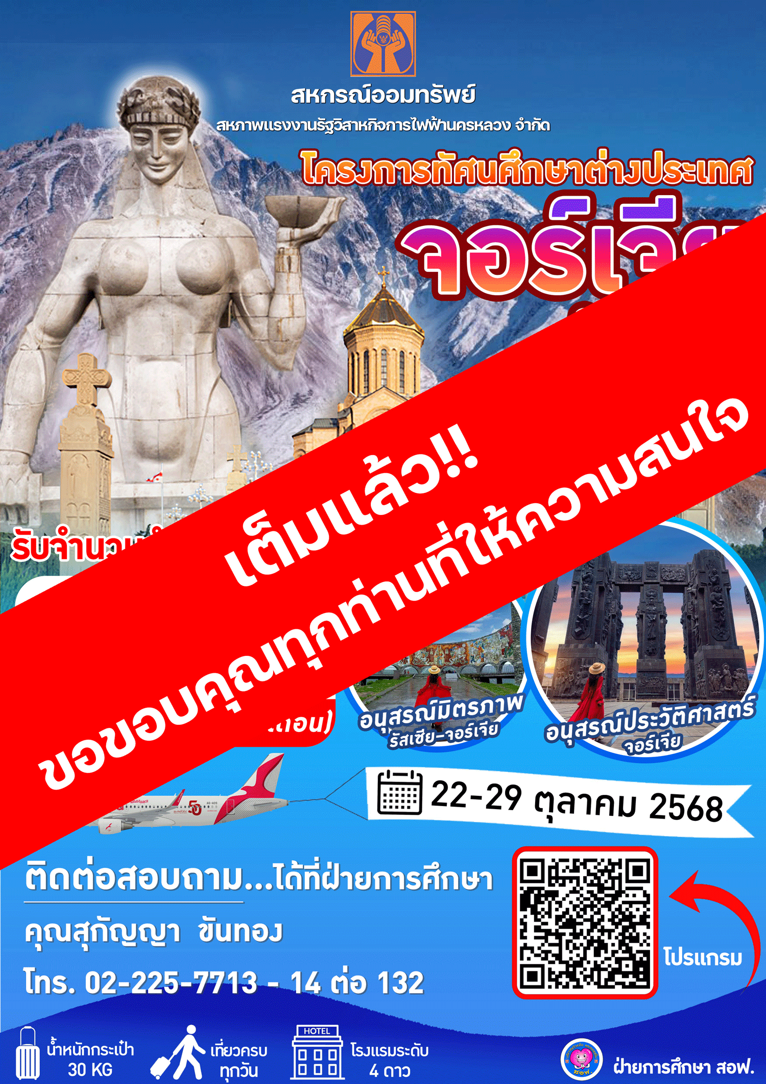 • โครงการทัศนศึกษาประเทศจอร์เจีย (รอบที่ 2) ระหว่างวันที่ 22 - 29 ตุลาคม 2568 เต็มแล้ว