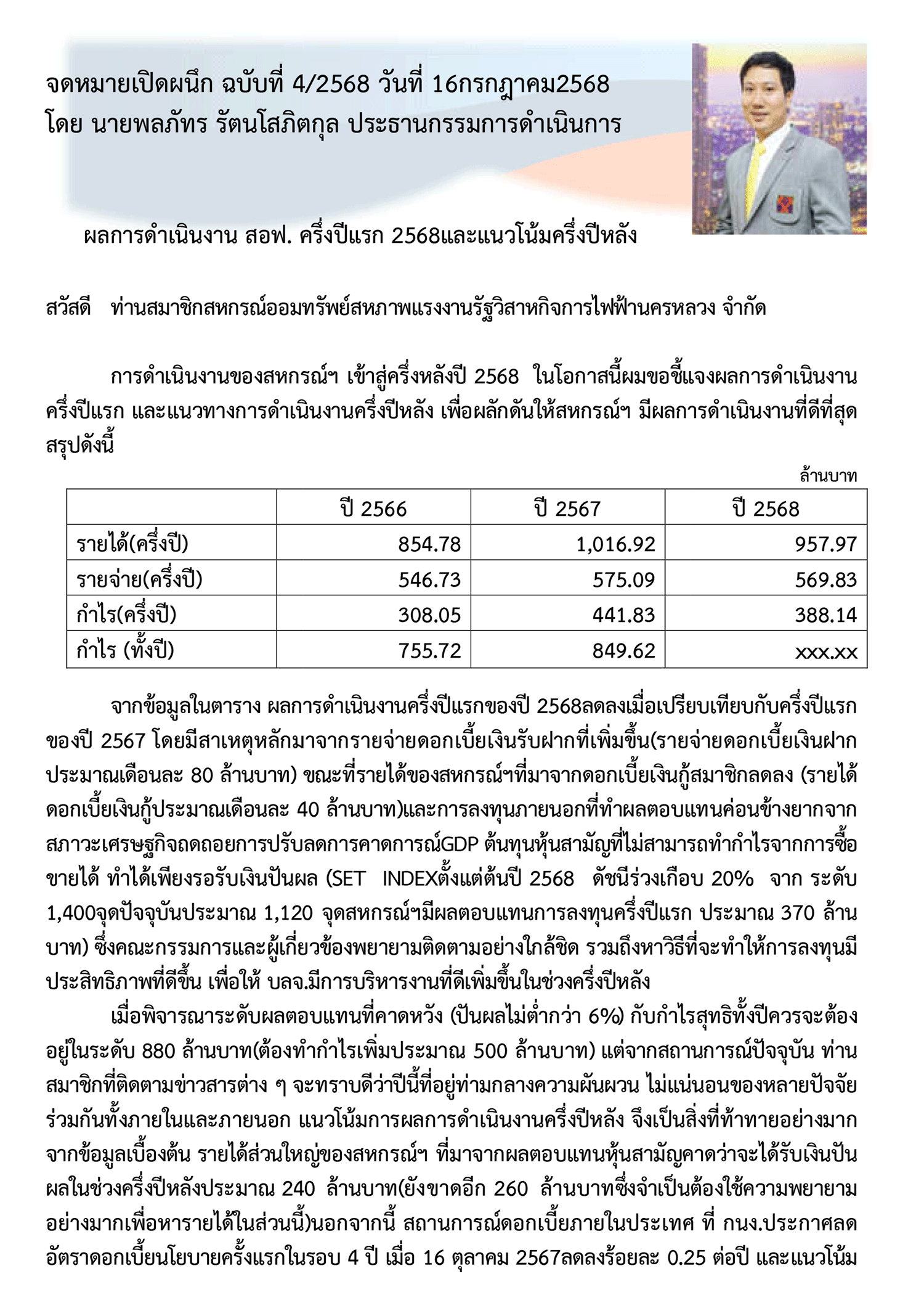 จดหมายเปิดผนึก ฉบับที่ 4/2568 วันที่ 16 กรกฎาคม 2568