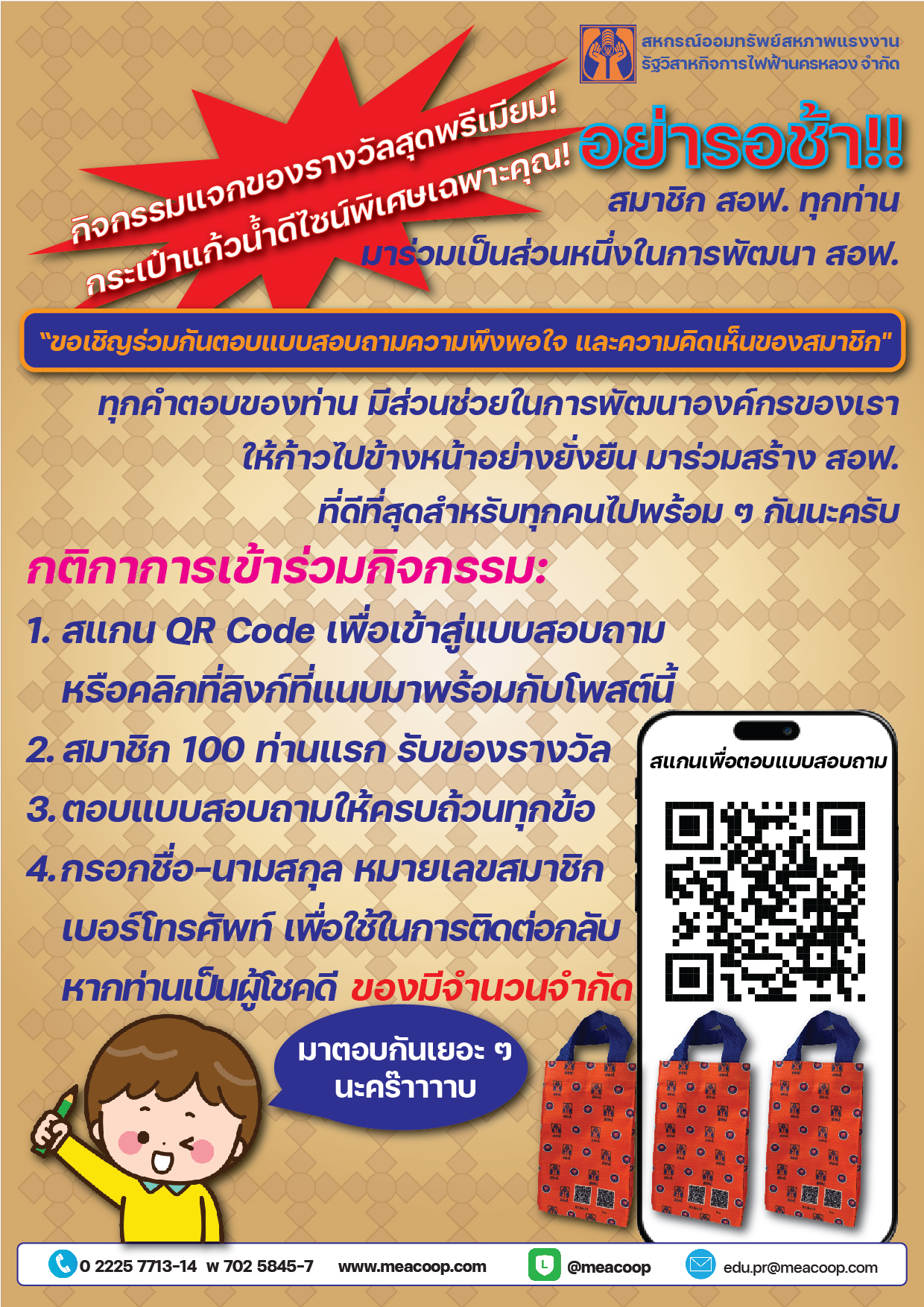 ขอเชิญร่วมตอบแบบสอบถาม เพื่อการพัฒนา สอฟ. ให้ดียิ่งขึ้น และรับรางวัล สำหรับ 100 ท่านแรกที่ตอบแบบสอบถาม