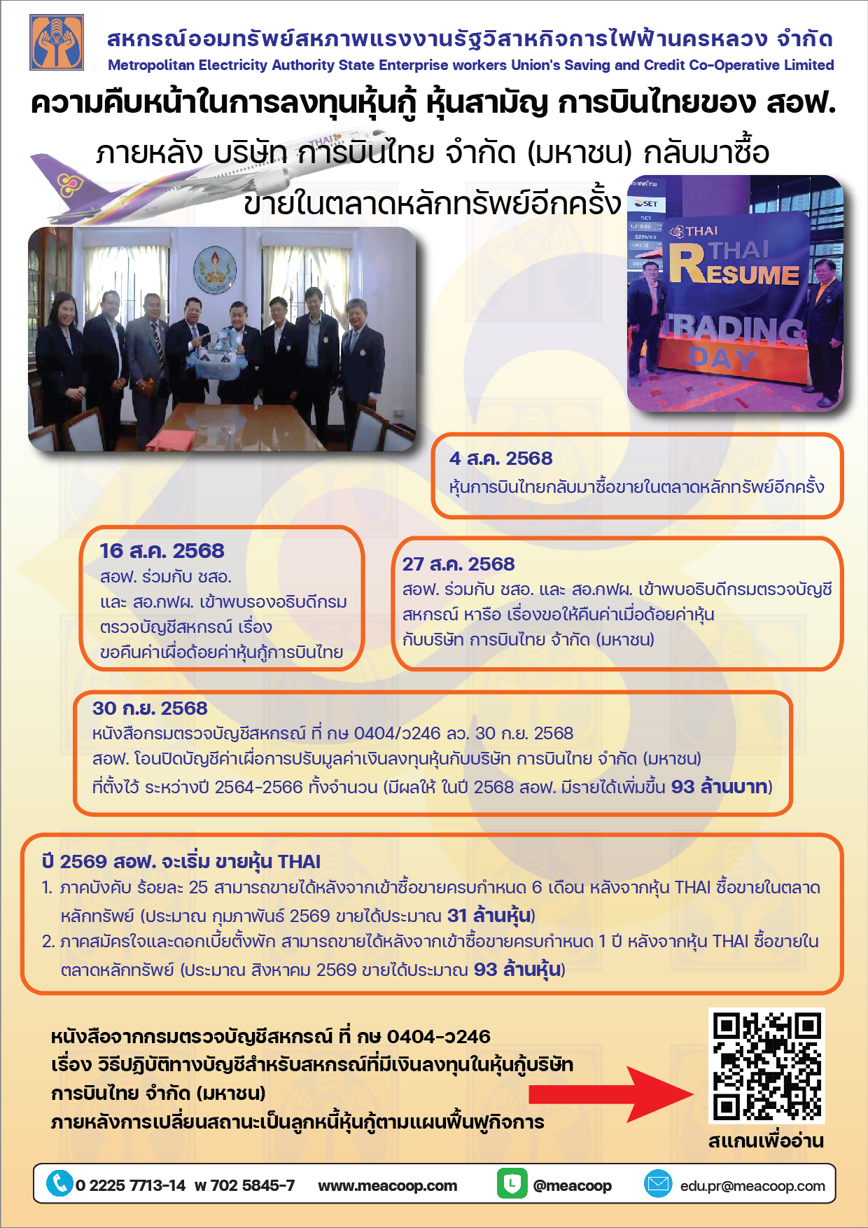 ความคืบหน้าในการลงทุนหุ้นกู้ หุ้นสามัญ การบินไทยของ สอฟ.