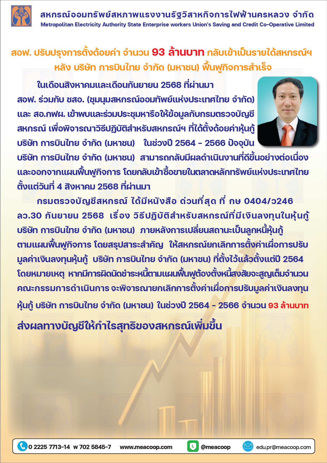 • สอฟ. ปรับปรุงการตั้งด้อยค่า จำนวน 93 ล้านบาท กลับเข้าเป็นรายได้สหกรณ์ฯ