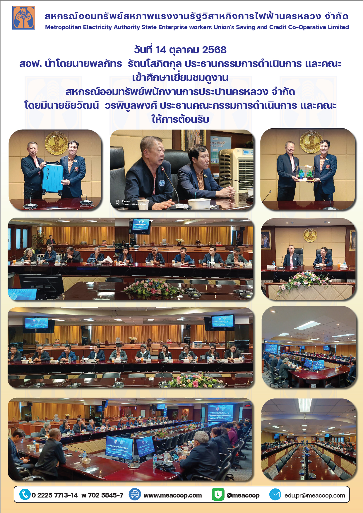 • วันที่ 14 ตุลาคม 2568 สอฟ. เข้าเยี่ยมชมดูงาน สอ.กปน.